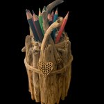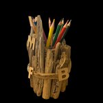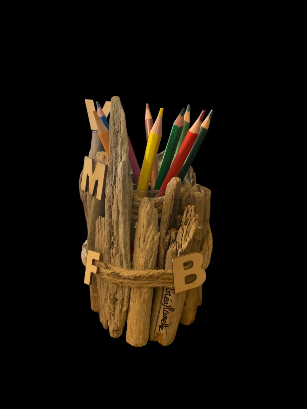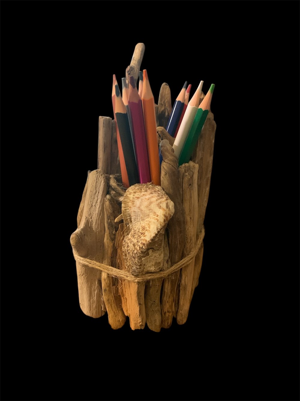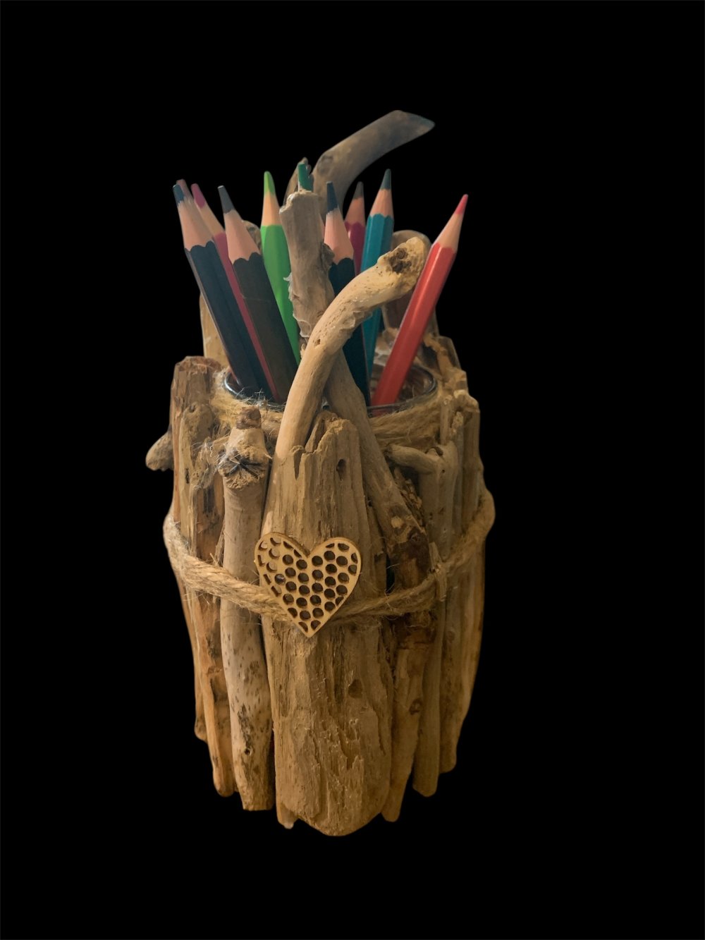 Pot en bois flotté et 10 crayons de couleurs pour Noël. Idée cadeau originale et utile. Fabrication artisanale en bois flotté. Pièce unique en bois flotté. Création originale pour Noël. Création pour les enfants qui aiment colorier. Nécessaire pour coloriage.