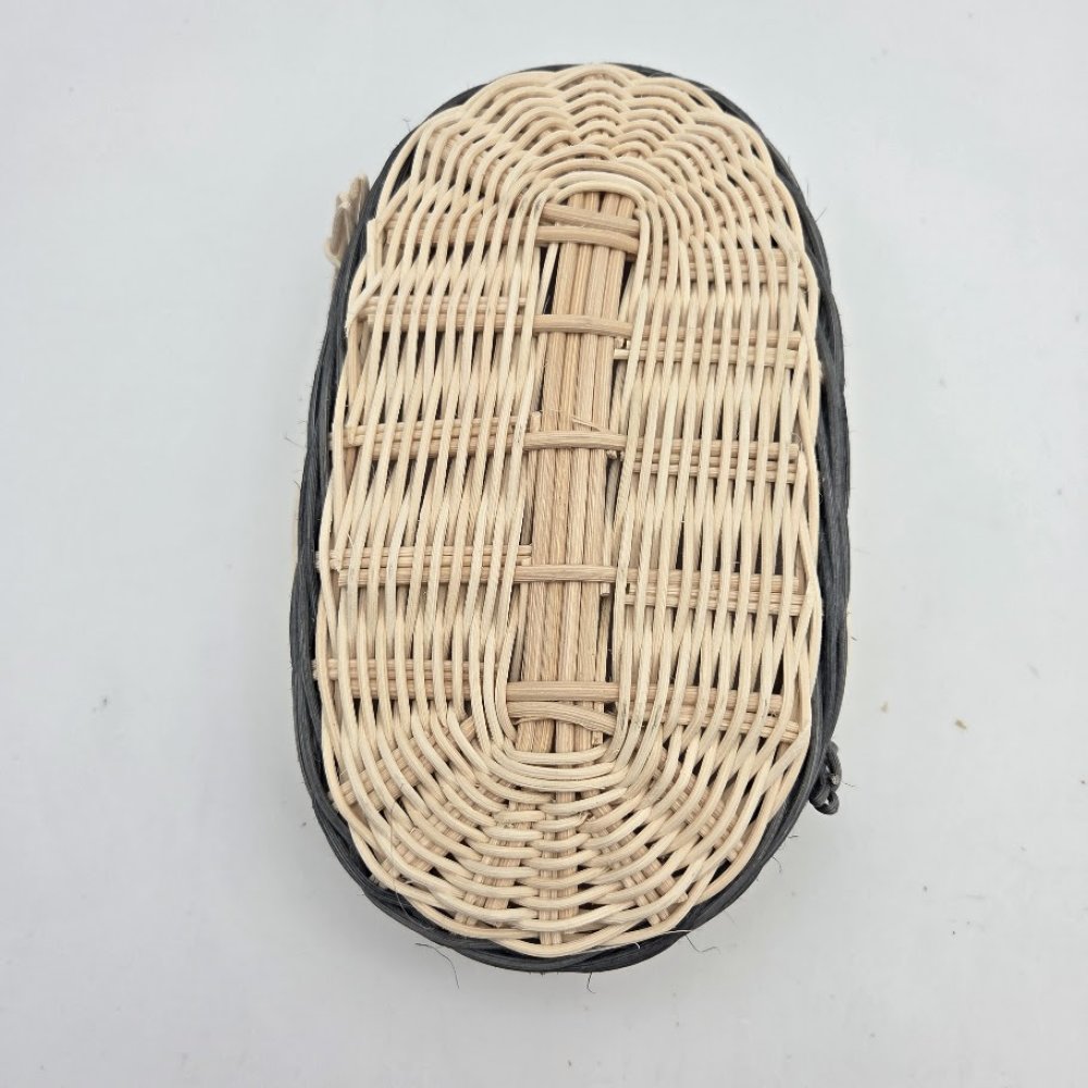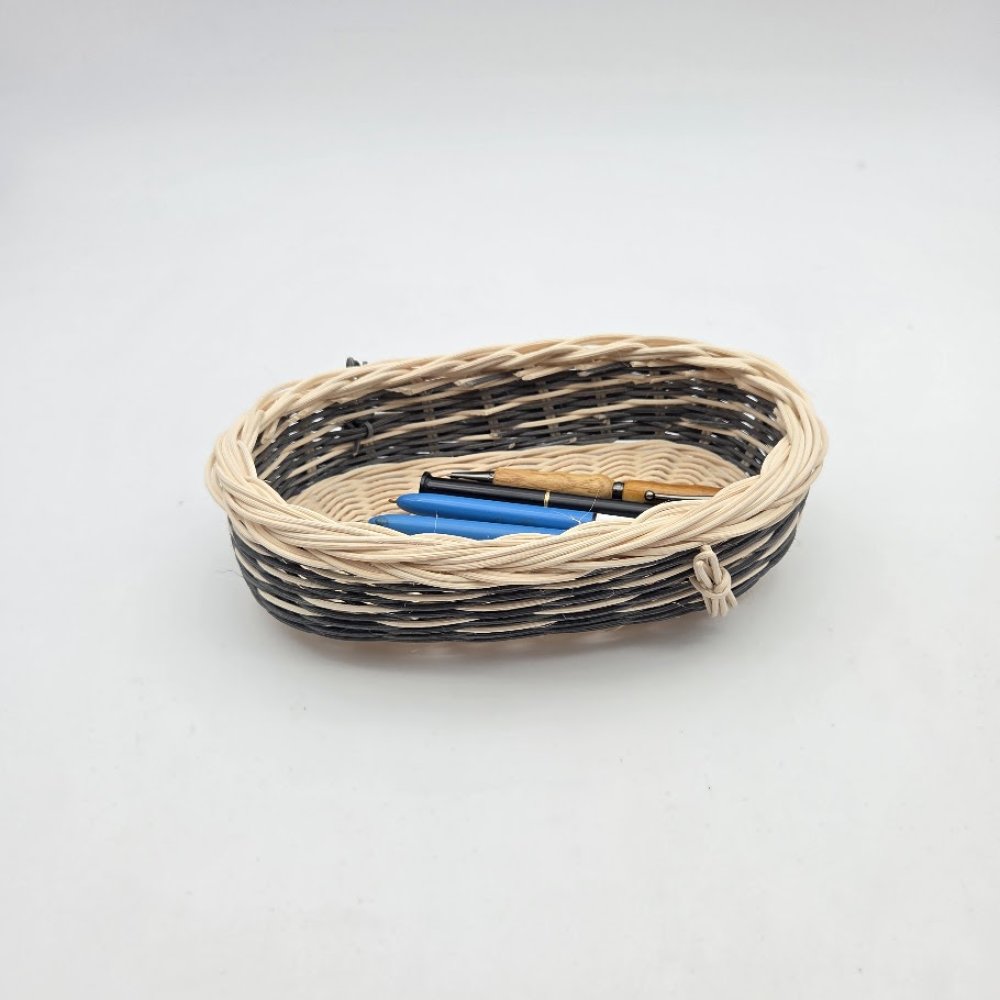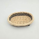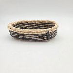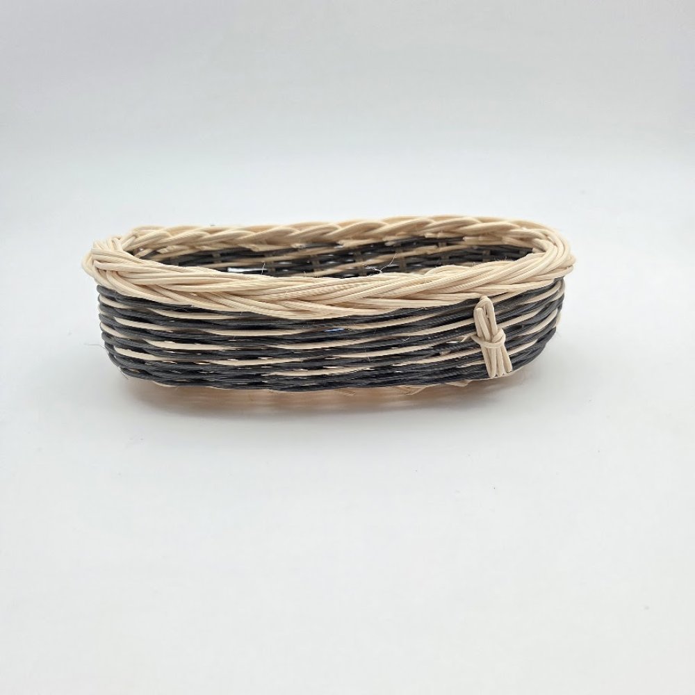 Corbeille ovale - vide-poche - panière à pain - panière à fruits en rotin naturel bleu marine et écru - fait main