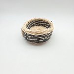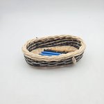 Petite corbeille allongée en rotin naturel bleu marine et écru - entièrement tressé main