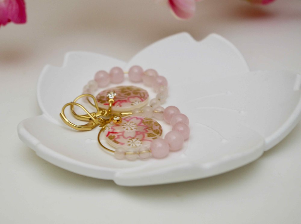 Découvrez les Boucles d’oreilles en acétate rose & papier washi fleuri, spécialement mises en valeur pour ce mois de mobilisation.