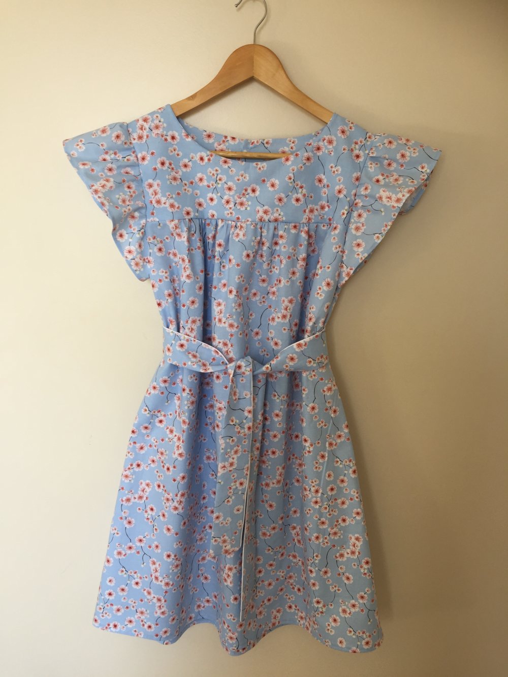 robe femme coton japonais fleurs de cerisier bleu ciel