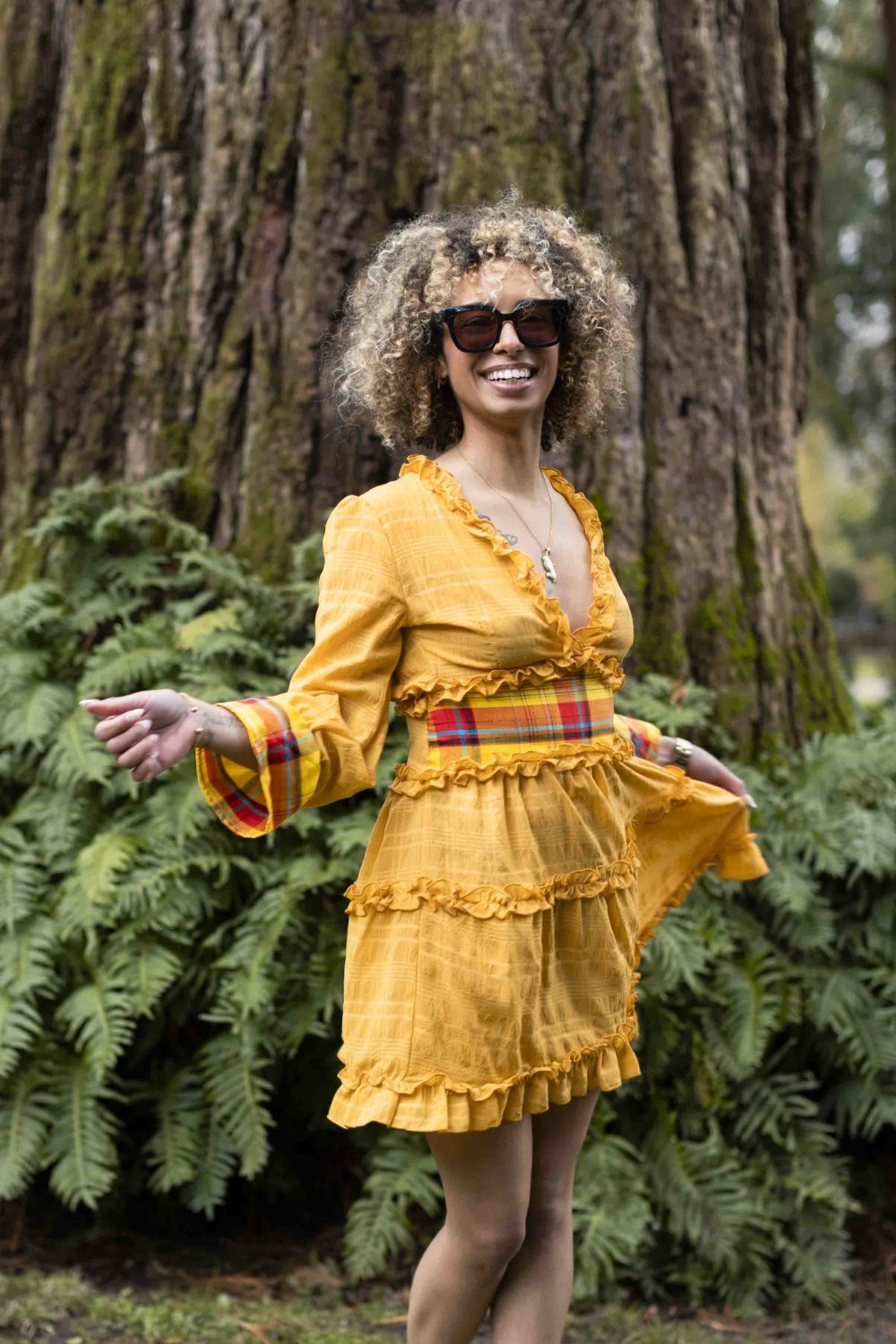 Robe jaune légère de la marque Charlior up-cyclée par Maison Kaïré, pièce unique artisanale