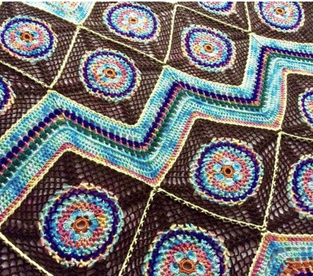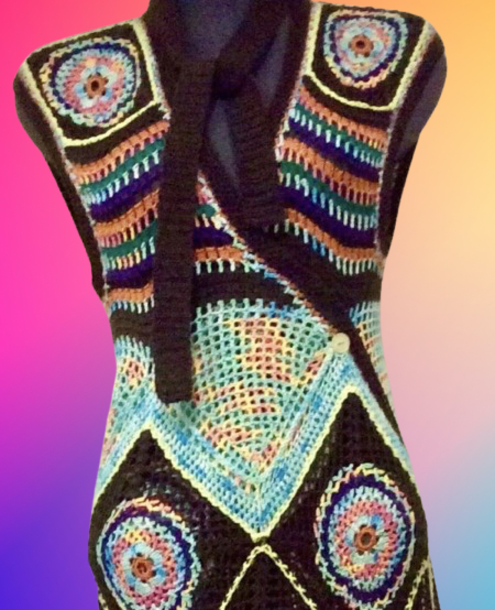Chic gilet -kimono longue au crochet ,multicolore style boho en carré grand -mère  ,fil acrylique Ajout au panier