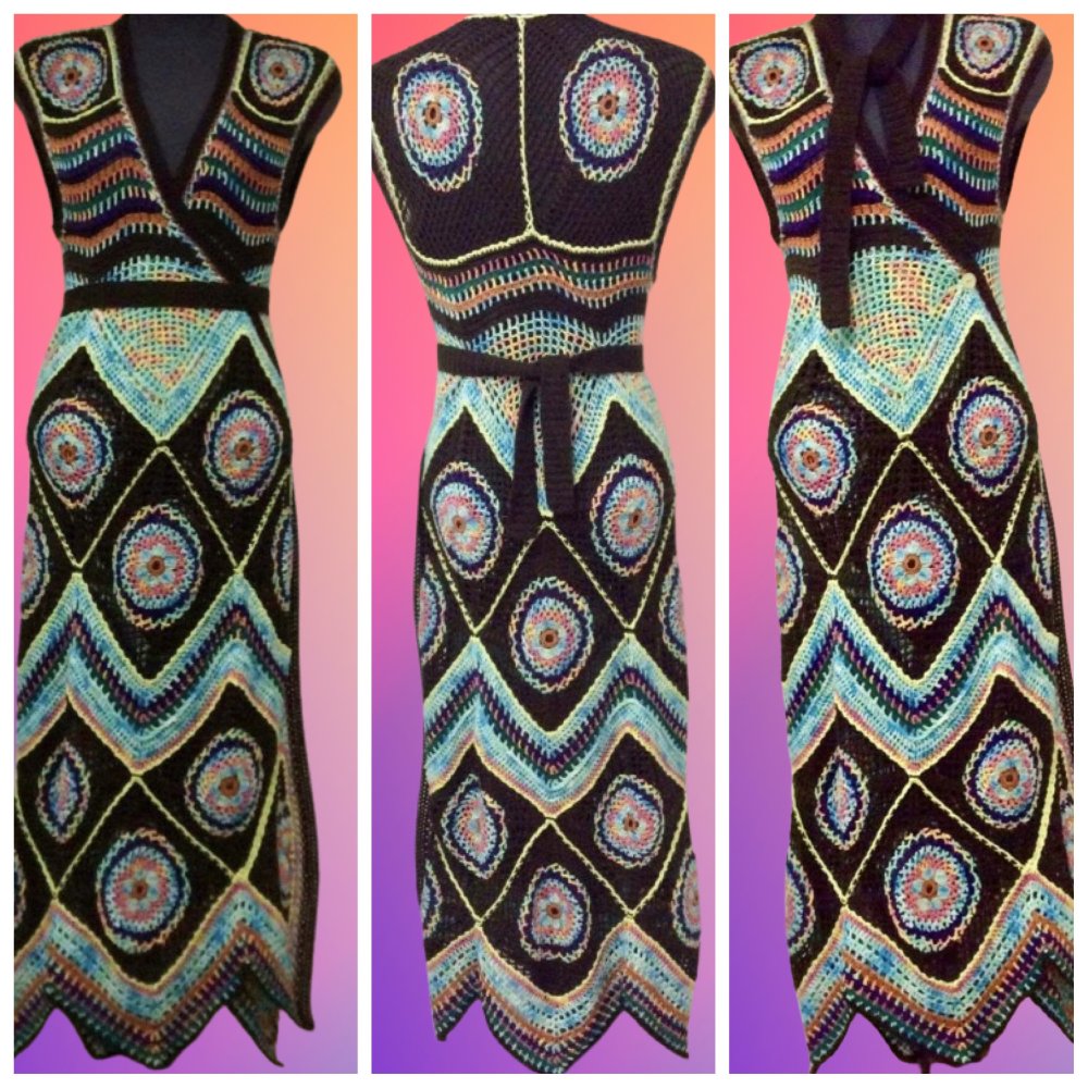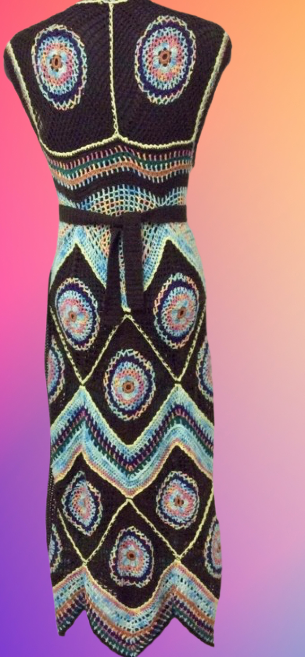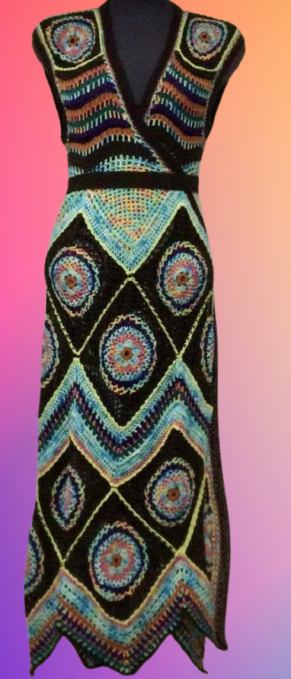 Robe longue,multicolore fantaisie ,style boho,hippie au crochet,modèle unique