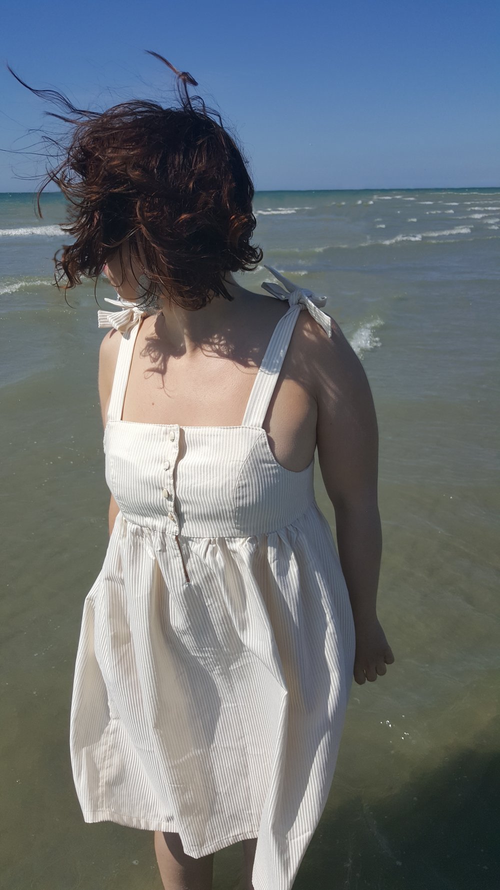 Boutonnée sur le devant (boutons en forme de coquillage) .