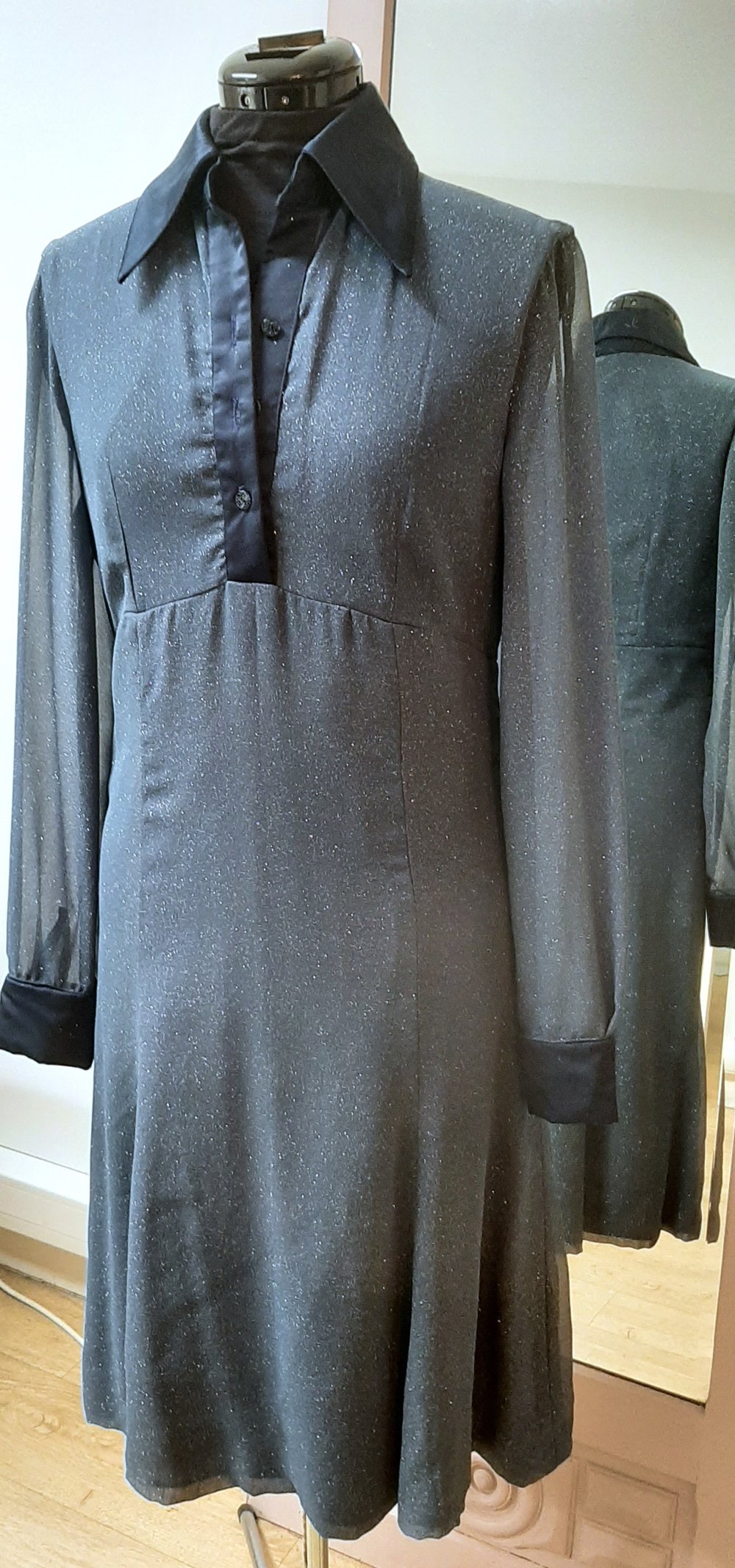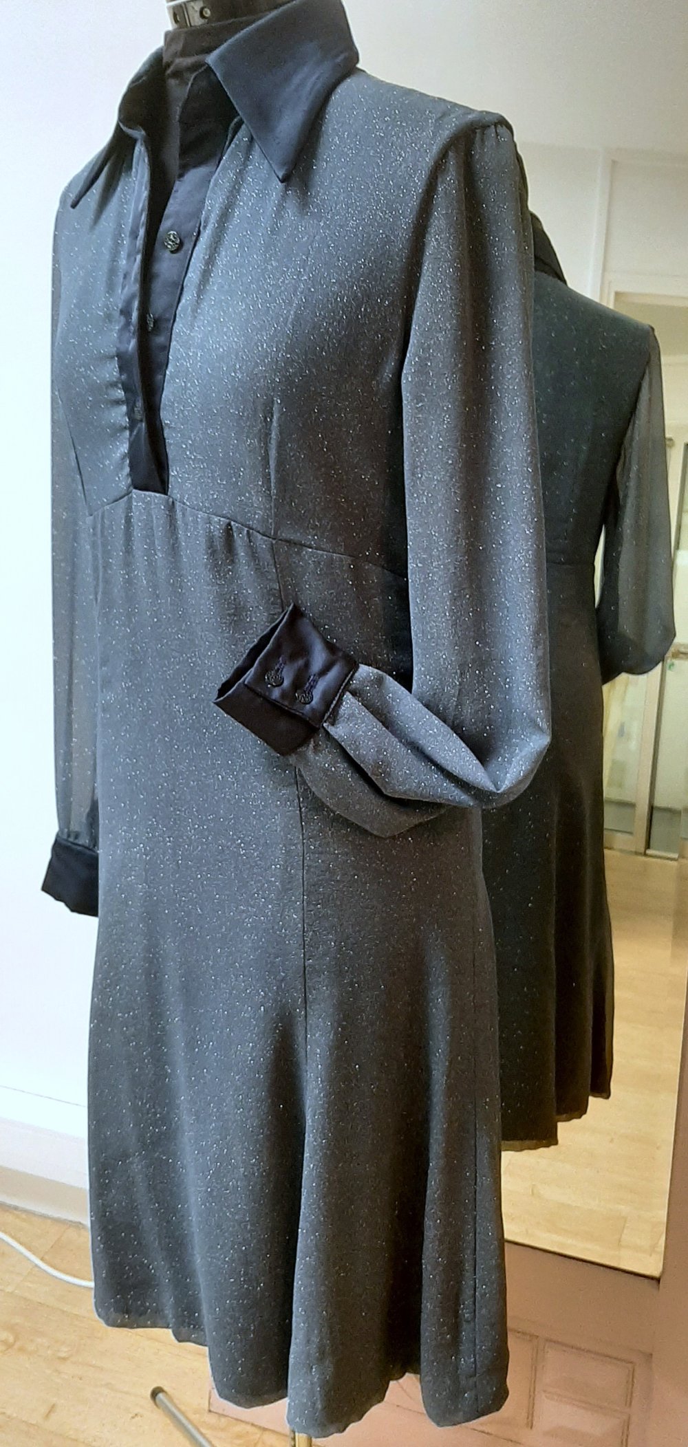 Robe au corsage ajusté puis ample sous poitrine grâce à la découpe sous la patte de boutonnage.