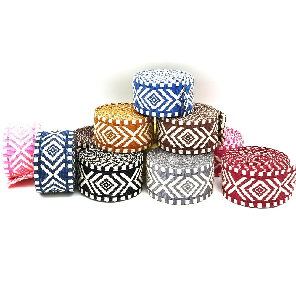 38mm coton sangle souple motif losanges bicolore ethnique fantaisie anse pour sacs à main fait main sac à dos sac banane tote-bag