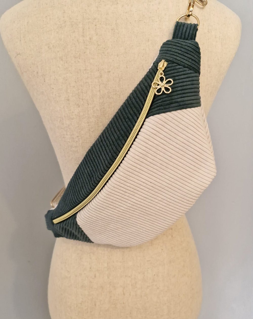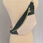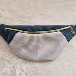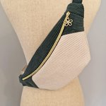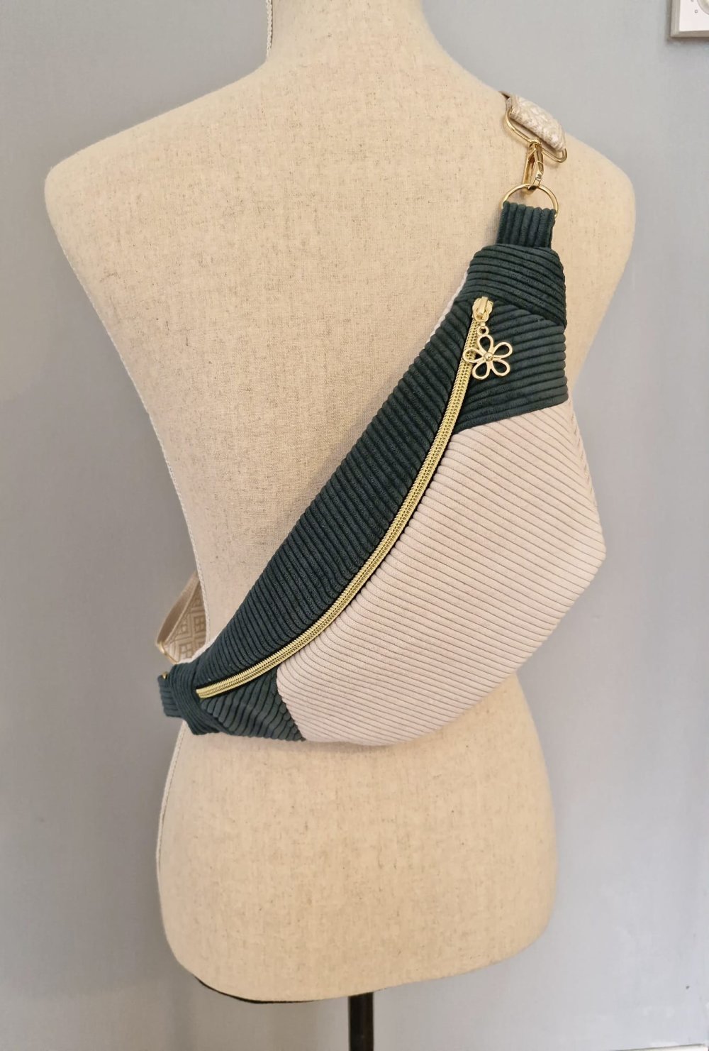 Sac banane pour femme velours côtelé vert et écru