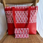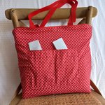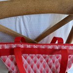Grand sac cabas en tissu matelassé aux motifs éventails rouges,