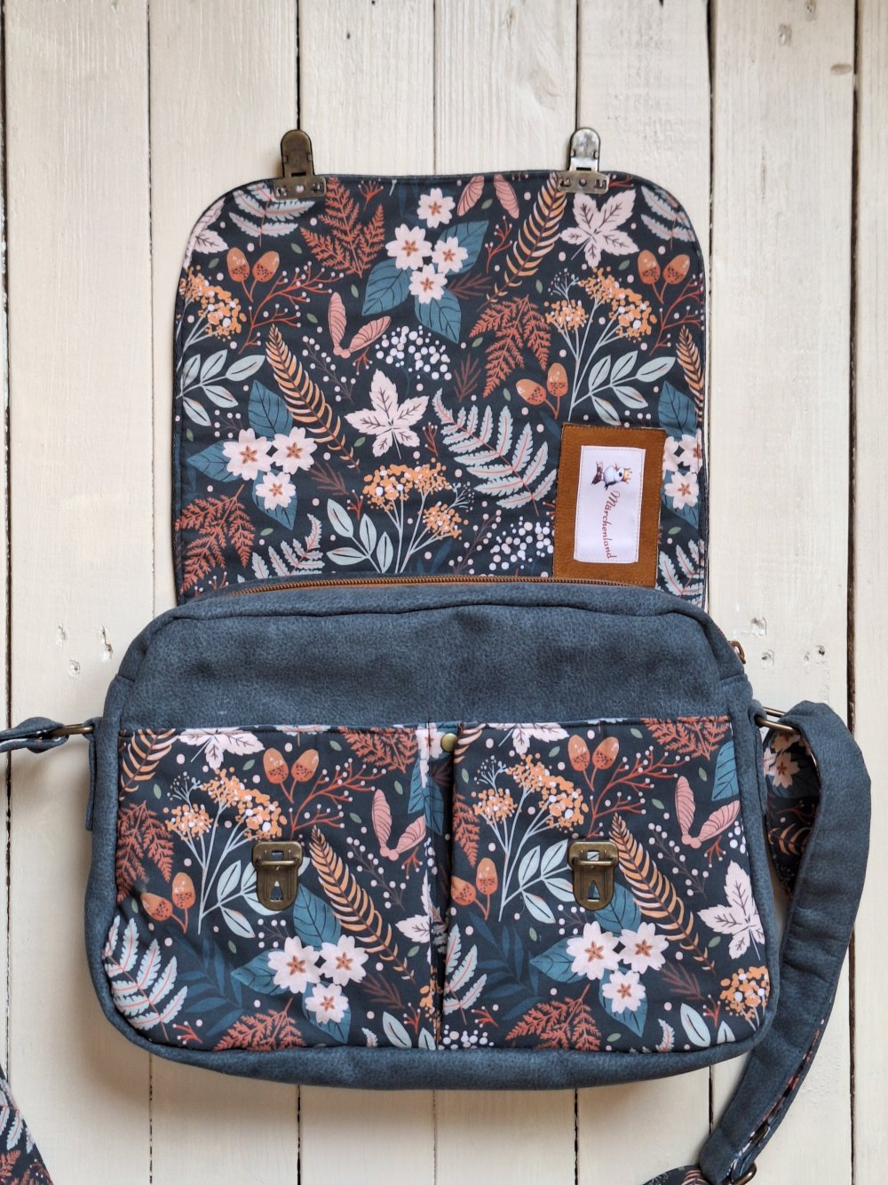 Cette besace cartable pour femme ou sac à bandoulière brodé est une pièce unique que j'ai cousu artisanalement et avec soin chez moi en Alsace!