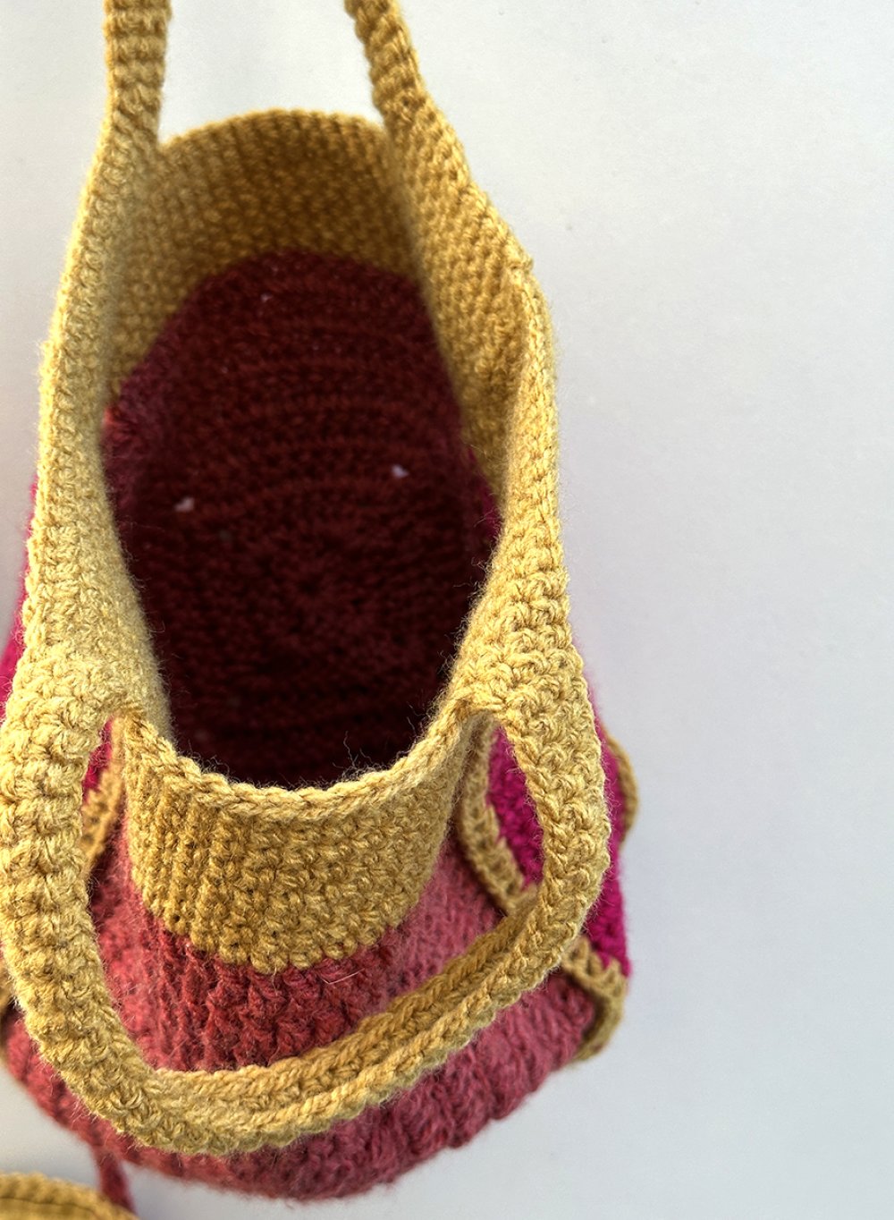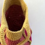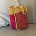 Sac seau au crochet dans un style vintage et bohème, rose et ocre, idée cadeau pour femme