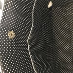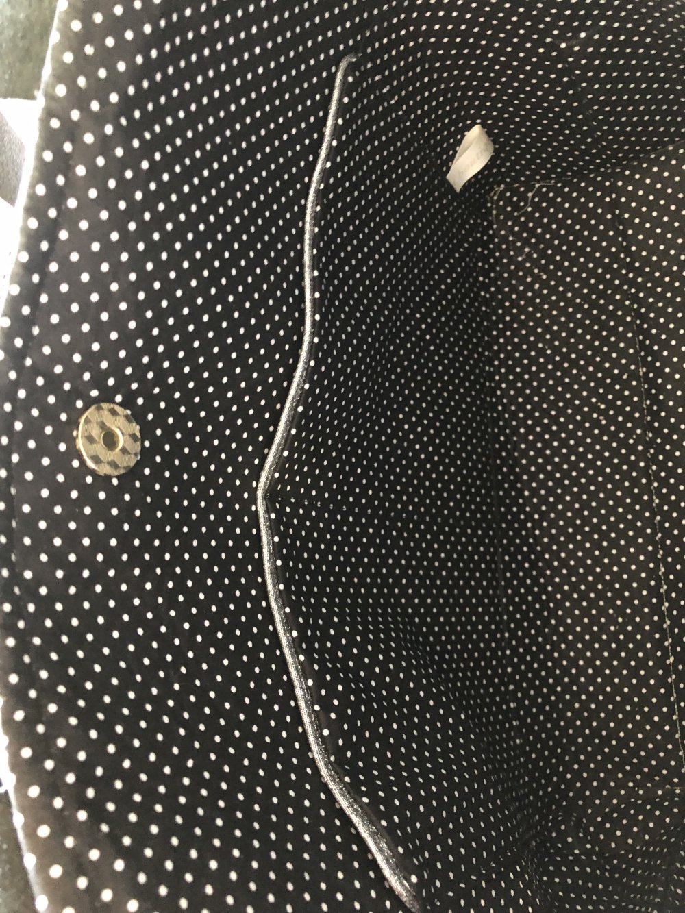 FERMETURE PAR PRESSION MÉTALLIQUE .TENUE RIGIDE .INTERIEUR NOIR POIS BLANC ,2 POCHES AVEC FINITIONS ARGENT