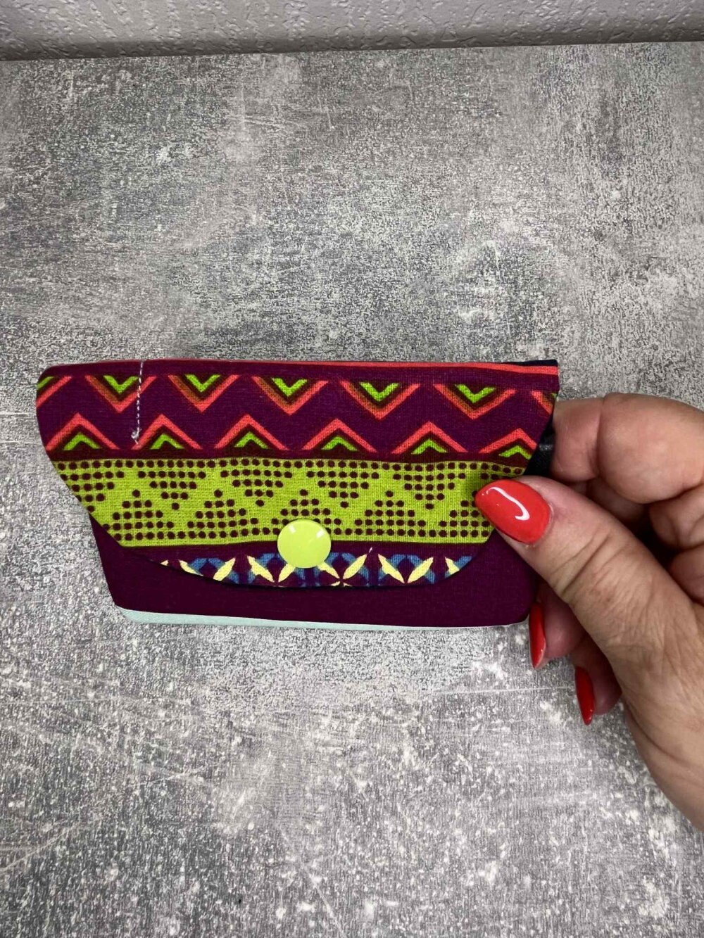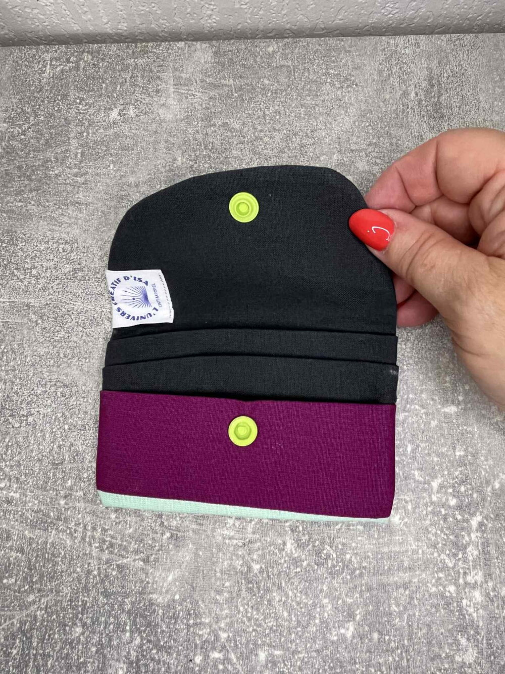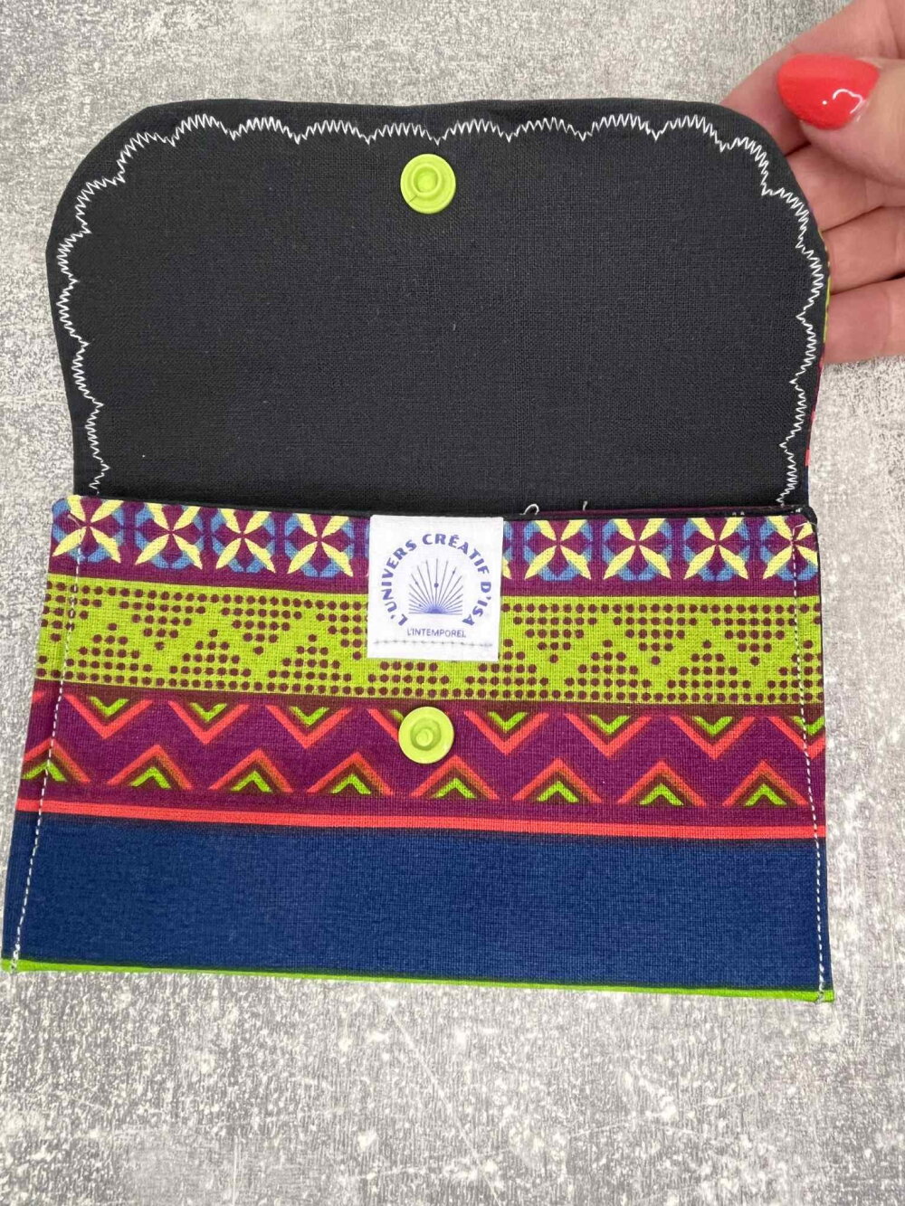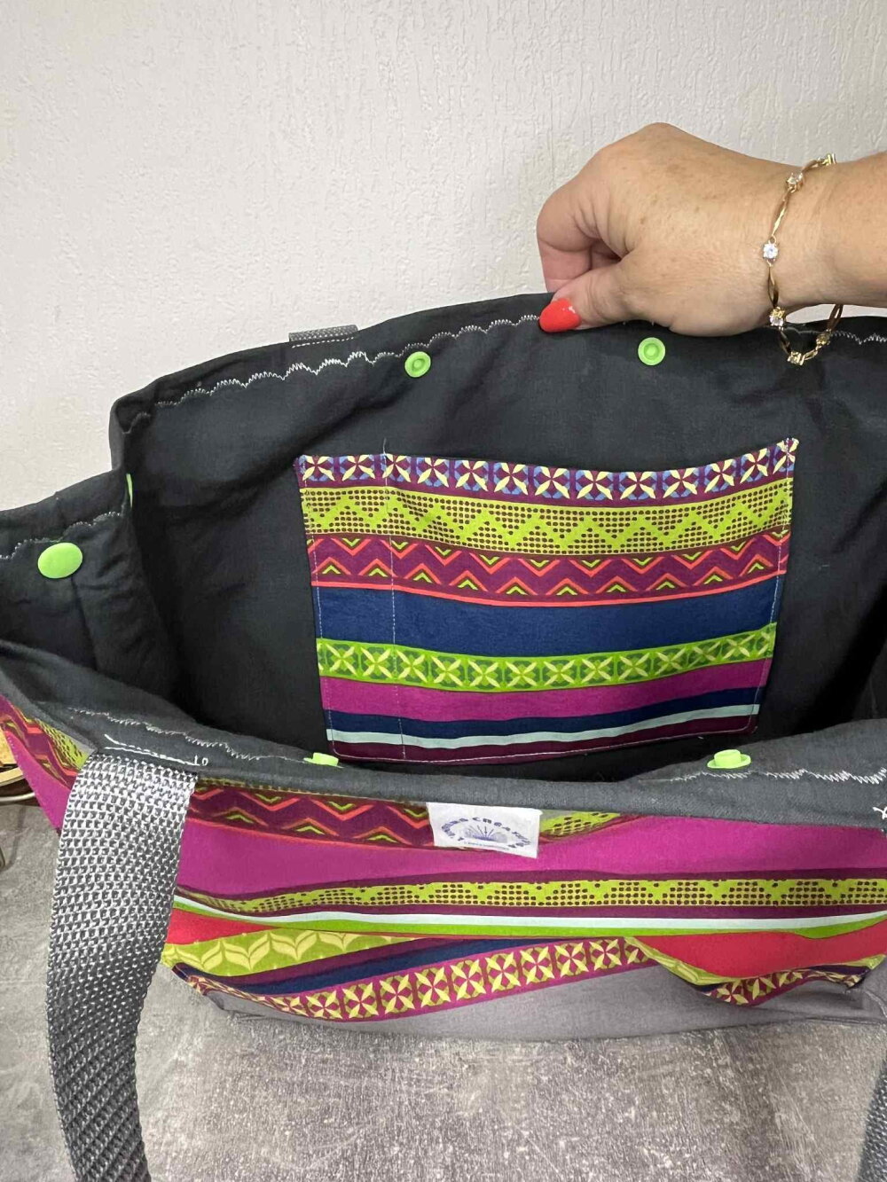 Un sac unique, coloré et flashy (vert, rouge, rose, blanc) avec doublure anthracite en coton.