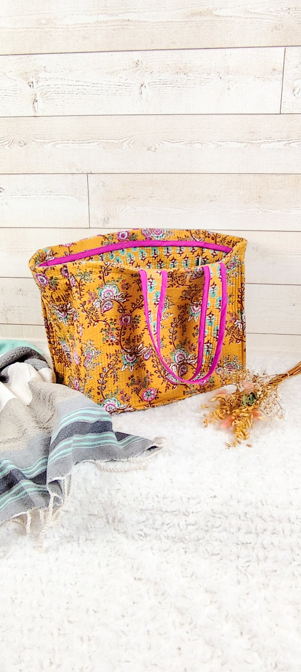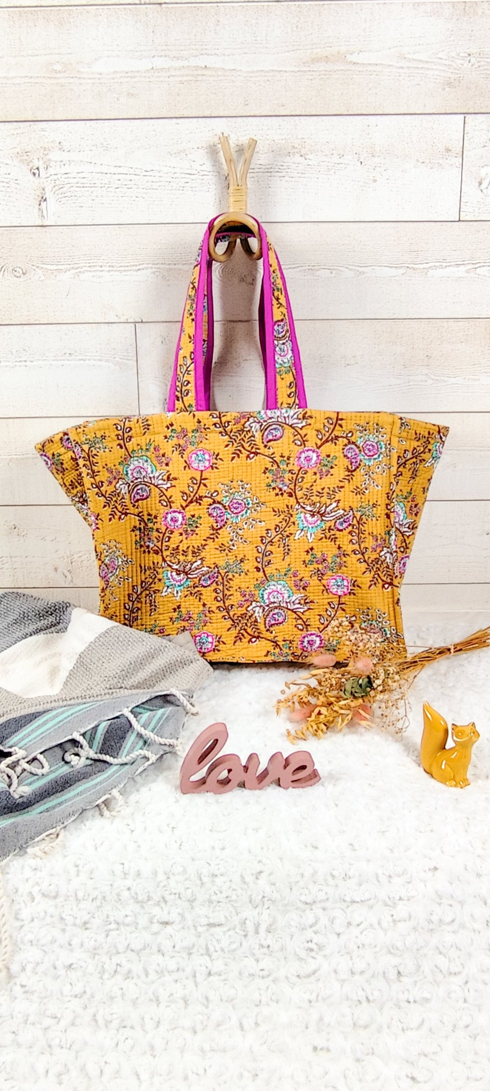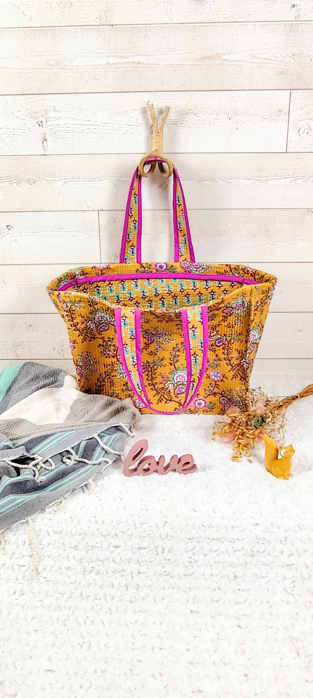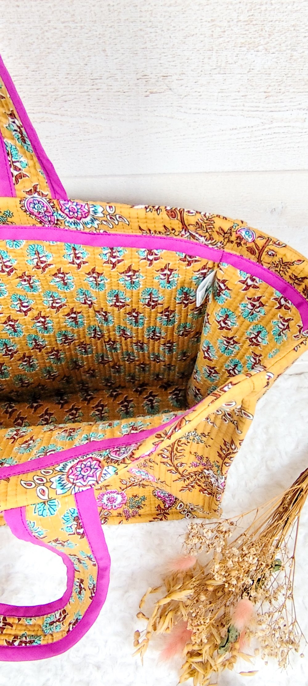 Ce grand sac cabas en tissu matelassé vous accompagne partout avec style et légèreté. Grâce à son format généreux, il accueille aussi bien les essentiels de la plage, les courses du marché, les dossiers pour le travail ou encore les jouets des enfants.