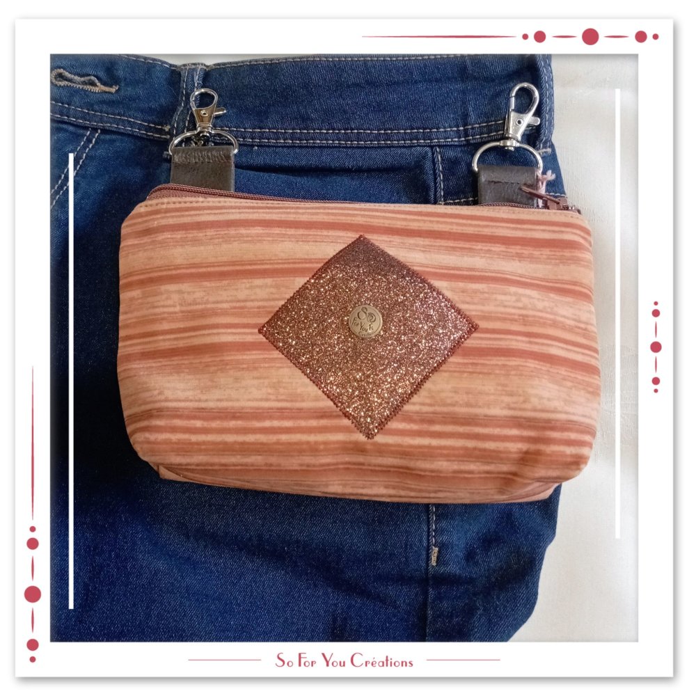 Pochette pratique mains libres avec deux crochets pour tel portable (ou autre).