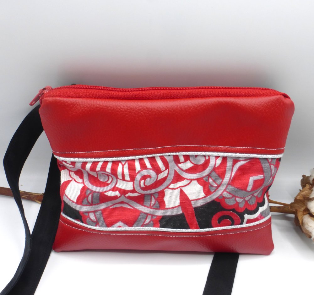 pochette sac à bandoulière géométrique rouge gris blanc noir