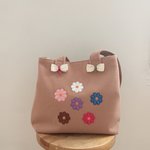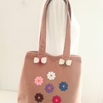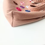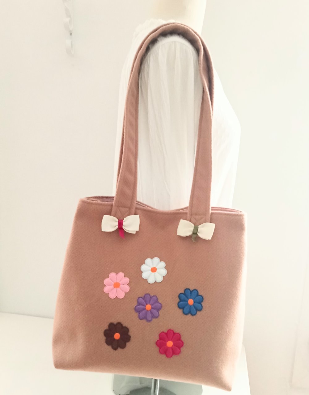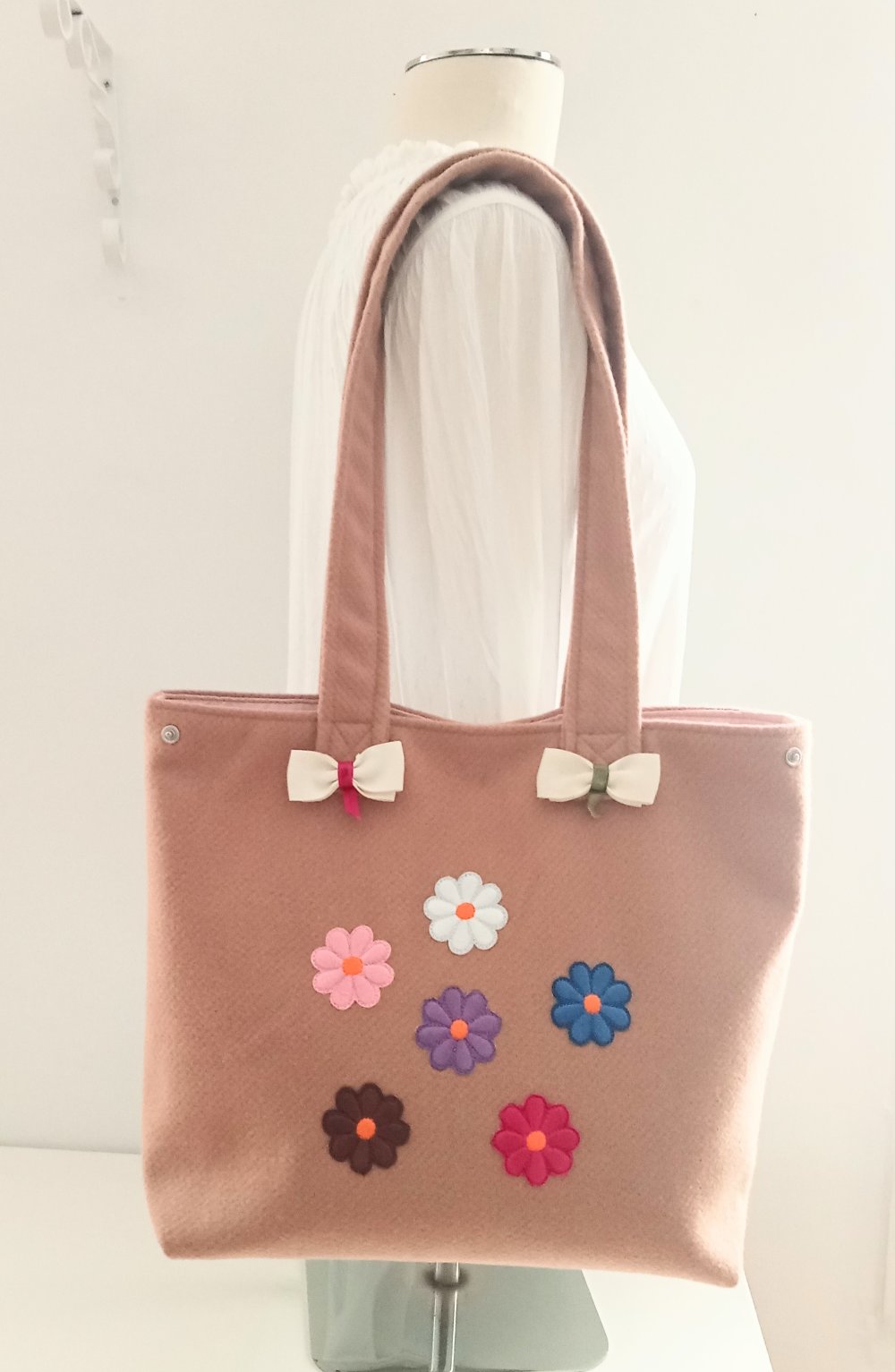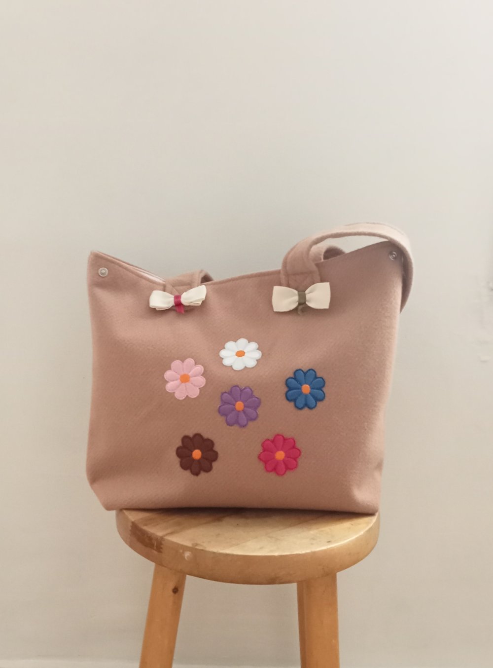 Sac en tissu avec fermeture bouton pression, doublé en tissu coton rose.