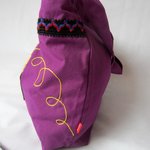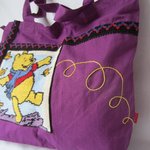 Sac à langer bébé,sac sport enfant,violet,canevas Winnie l'ourson,broderie fait main,modèle unique,fermeture éclair,bordure laine