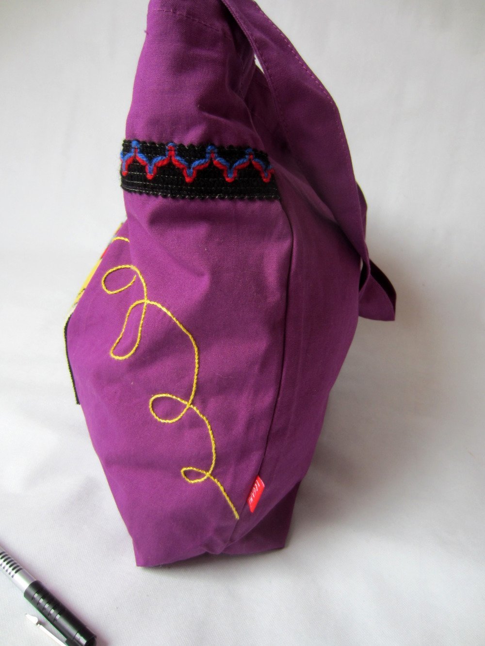 Quelques pirouettes brodées au point de tige et hop!... voilà un sac qui sort de l'ordinaire!
