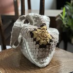 Découvrez le sac à main “Frozen Dew”, un accessoire fait main au crochet avec des fils mélangés (laine–coton) issus de stock dormants, pour un engagement éco-responsable. Sa teinte beige et ses carrés granny lui donnent un style vintage, bohème et décontracté.