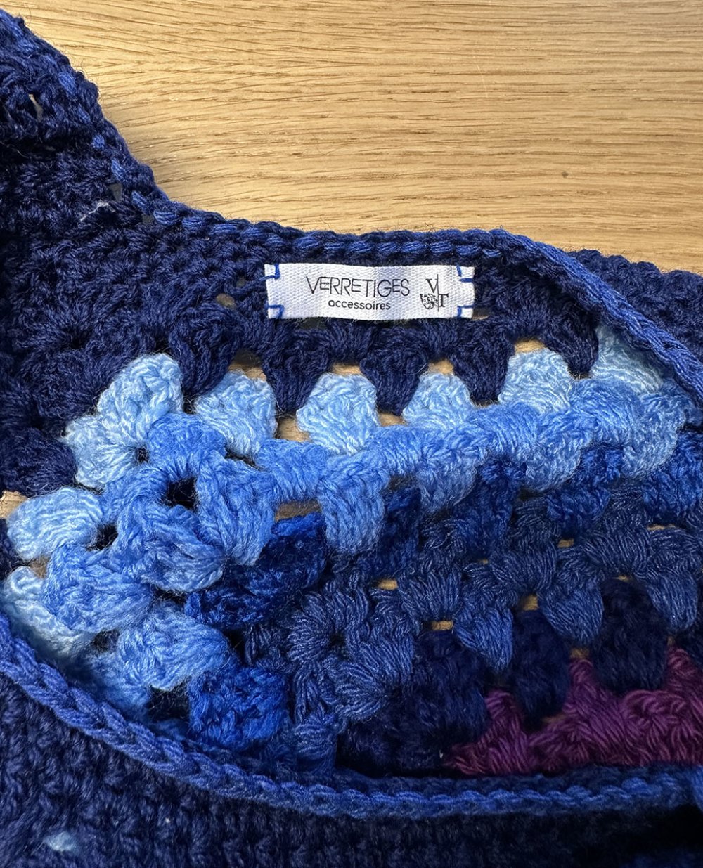 VerreTiges propose des sacs et accessoires réalisés au crochet à partir de fils de seconde main, chinés ou récupérés.