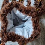 Sac à main crocheté blanc effet fourrure fait main au crochet avec du fil chenille oekotex. Doté des poignées rondes transparentesen plastique, d'une chaîne dorée adaptable d'un 1m 20. Il y une doublure blanche en coton.