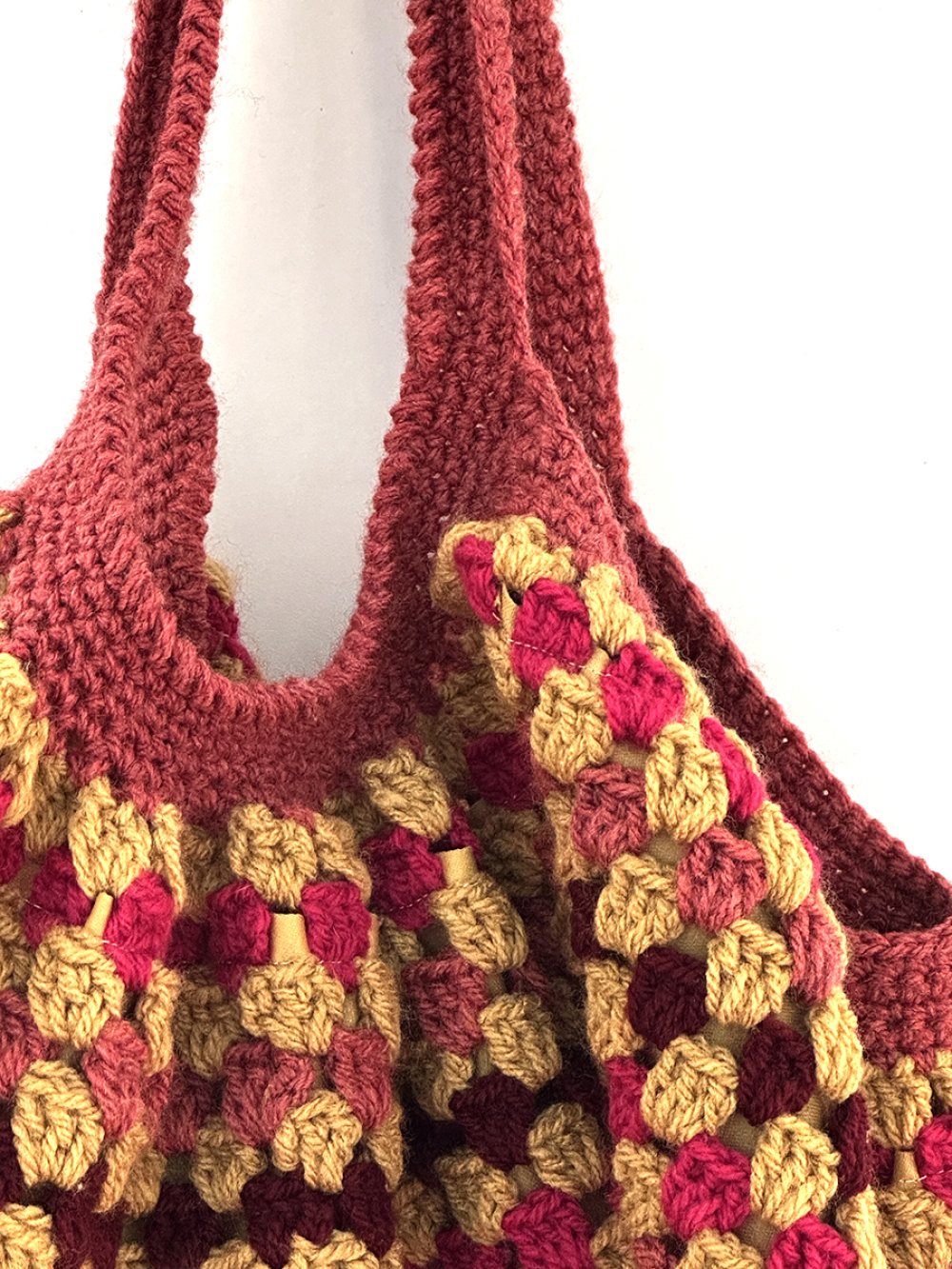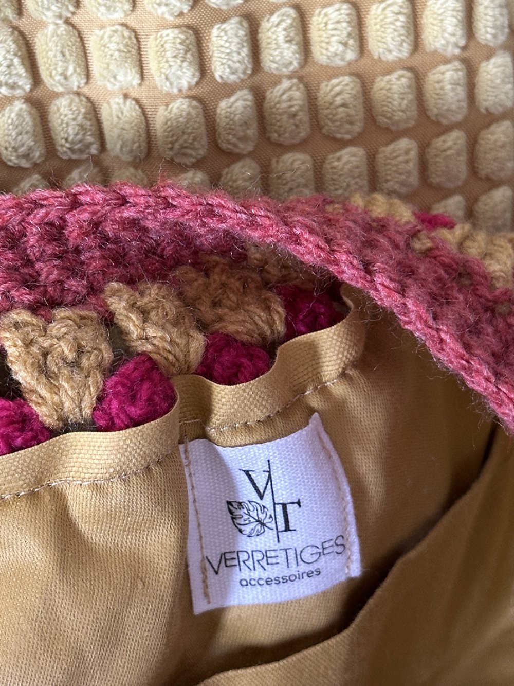 VerreTiges propose des sacs et accessoires réalisés au crochet à partir de fils de seconde main, chinés ou récupérés.
