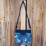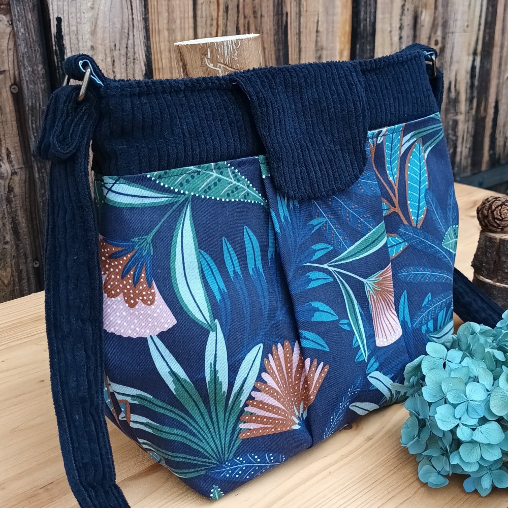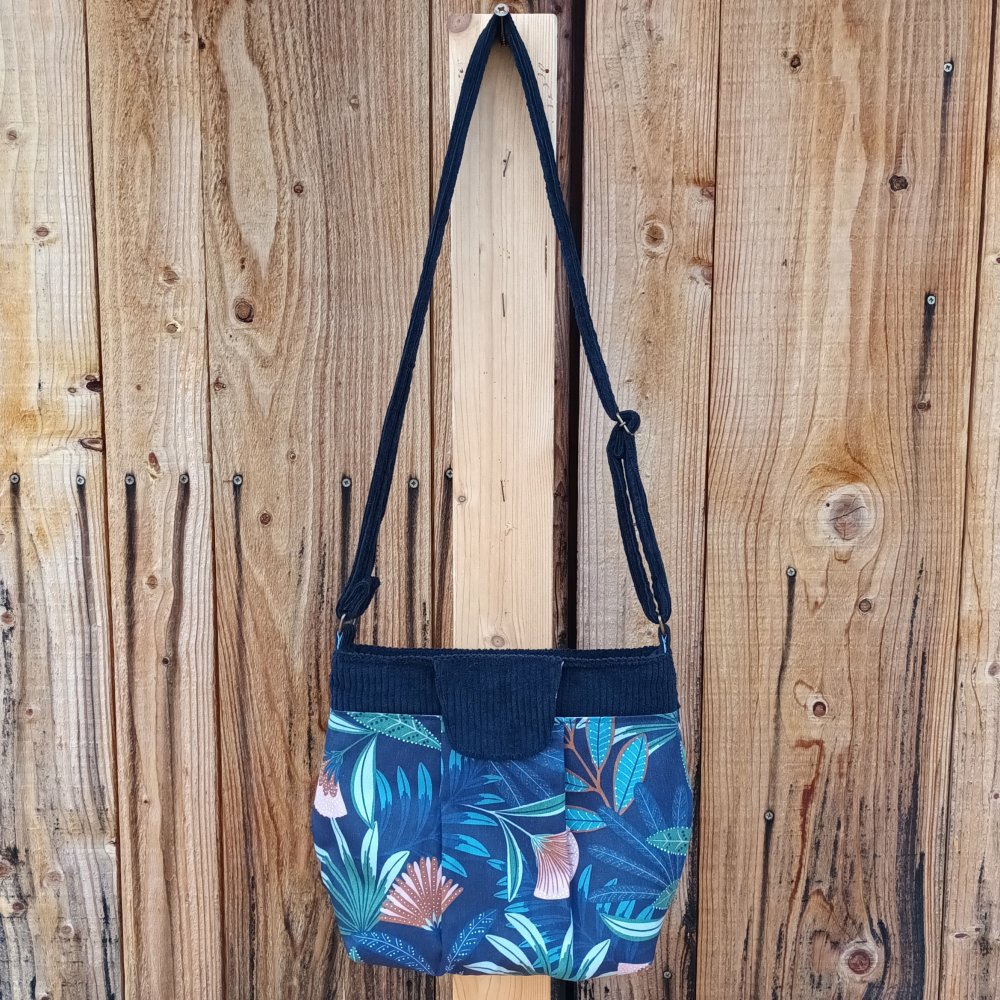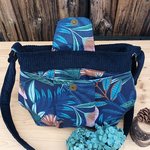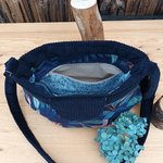 Sac à main velours côtelé marine, sac à main motif palme bleu, sac à main marine