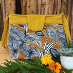 Un motif feuillage jaune ocre décore ce sac à main. Le haut du sac et l'anse sont réalisés avec un beau velours côtelé 100% coton couleur moutarde. Ces beaux jaunes chaleureux sont parfaits pour cette saison automnale !