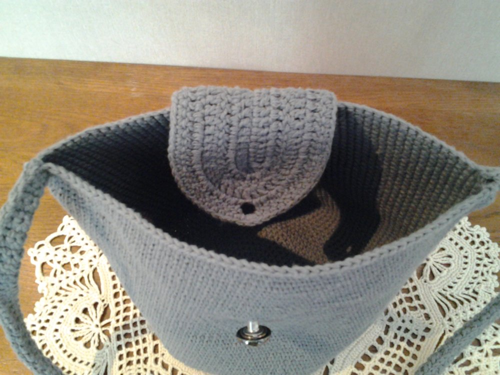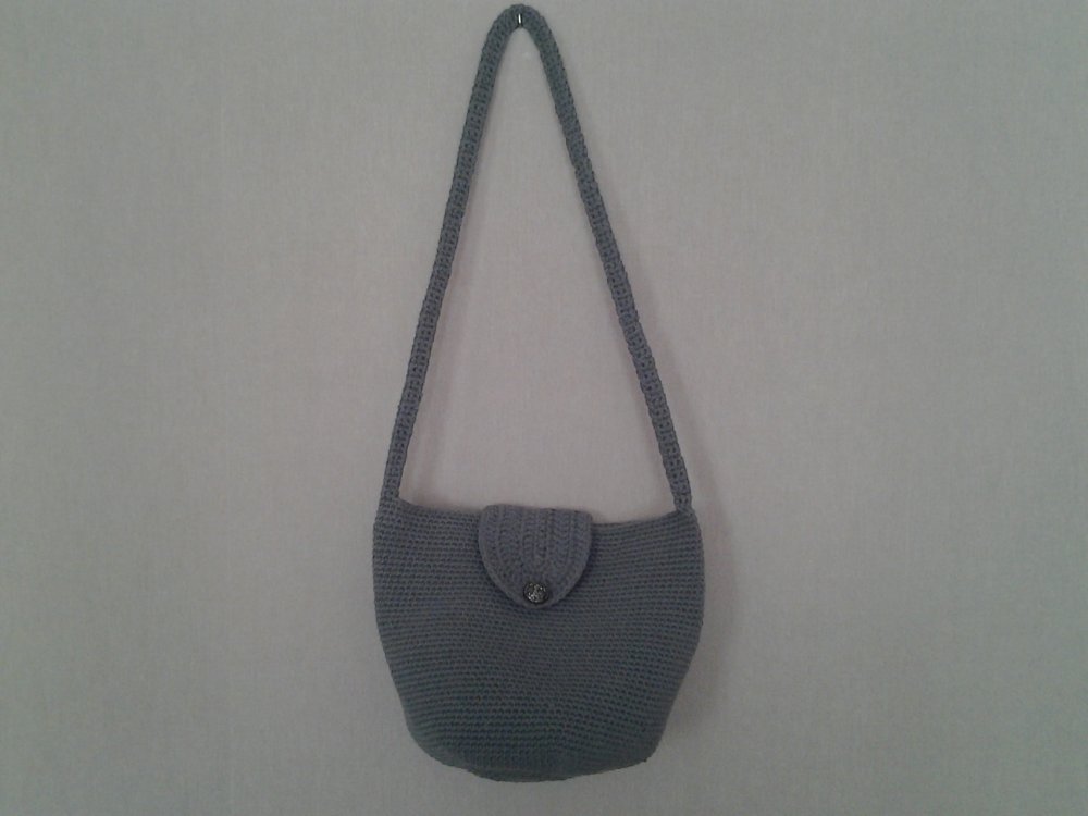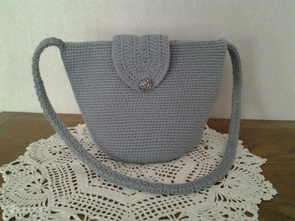 petit sac bandoulière simple au crochet en 100% coton de couleur gris fonçé
