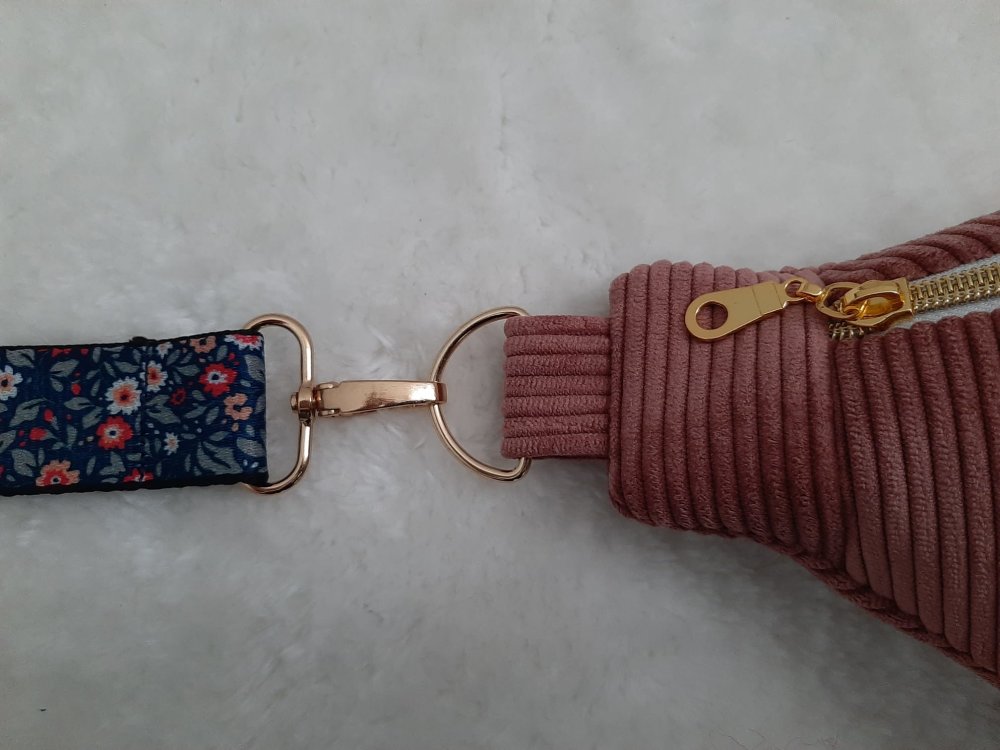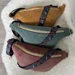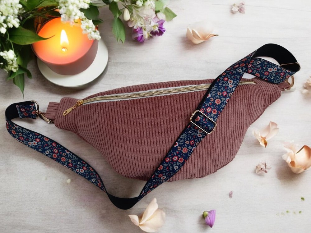 Sac banane en velours côtelé rose, sac à main femme, fait main en France