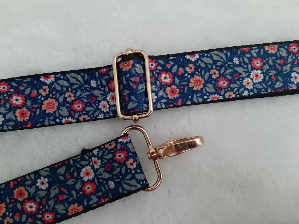 Il est réalisé dans un tissu en velours côtelé avec un intérieur blanc à pois doré. La fermeture éclair est dorée. La bandoulière est réglable de 65cm à 125cm environ.