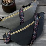 Sac banane en velours côtelé bleu ou gris, sac à main femme, fait main en France