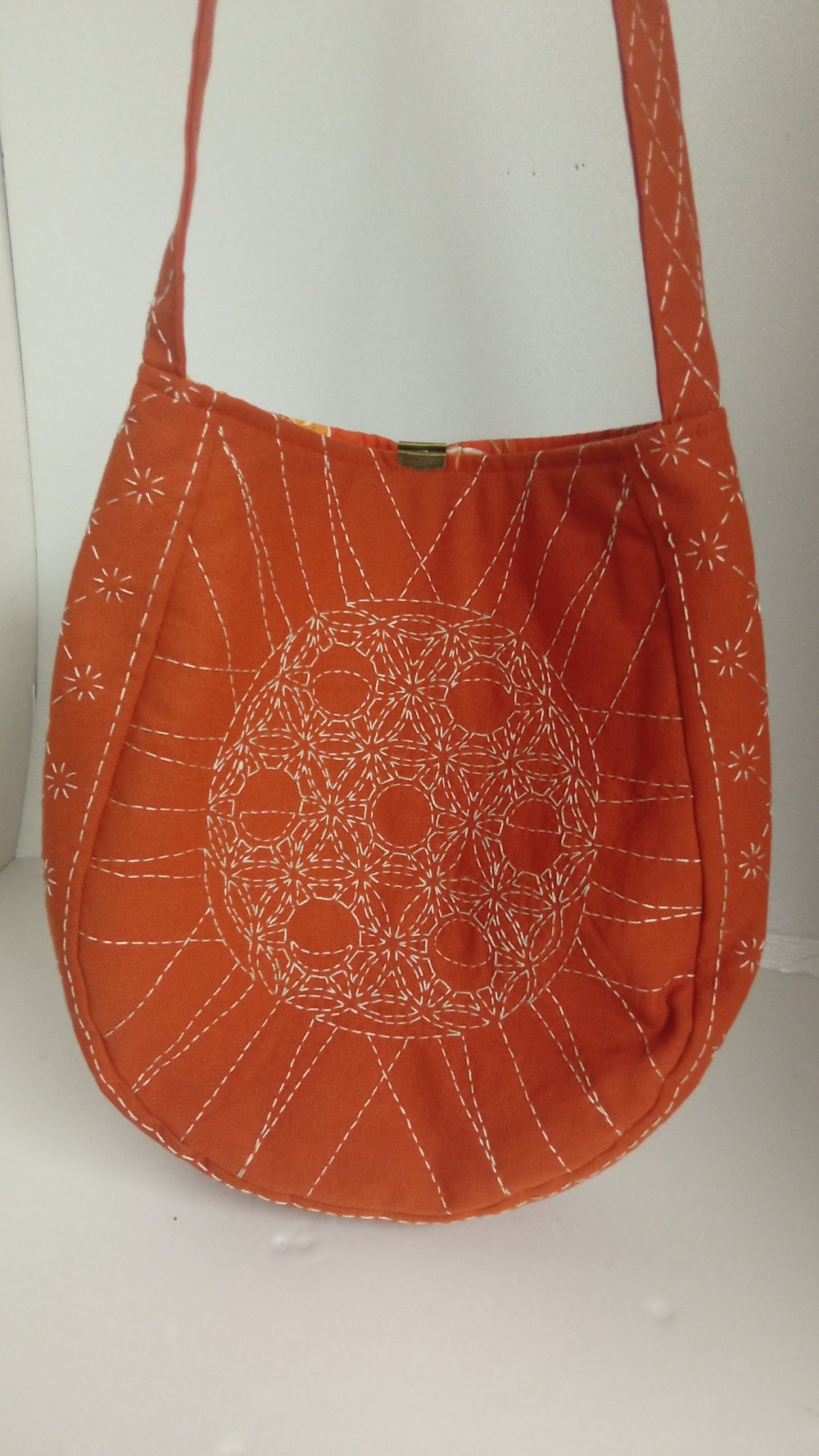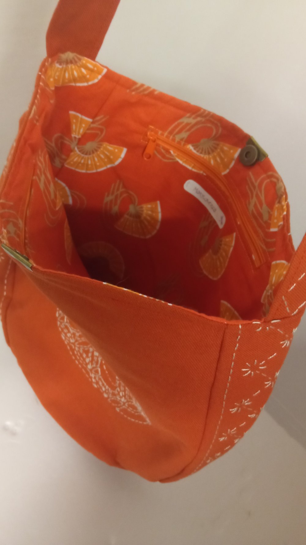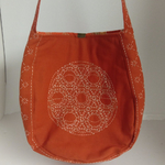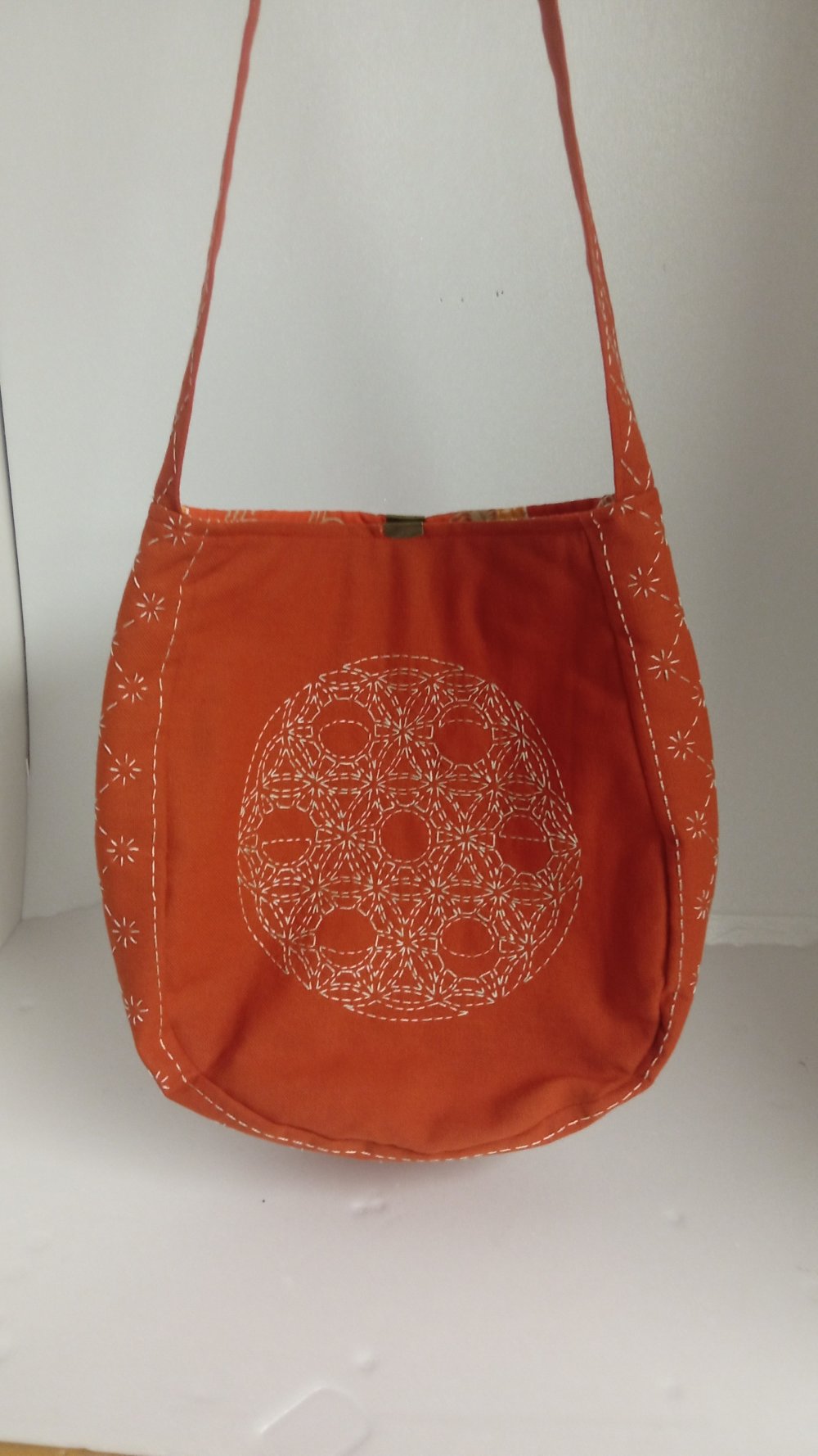 Sac bandoulière toile orangée avec motif en broderie sashiko