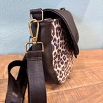 Sac bandoulière en enduit noir, tissu léopard et coton imprimé