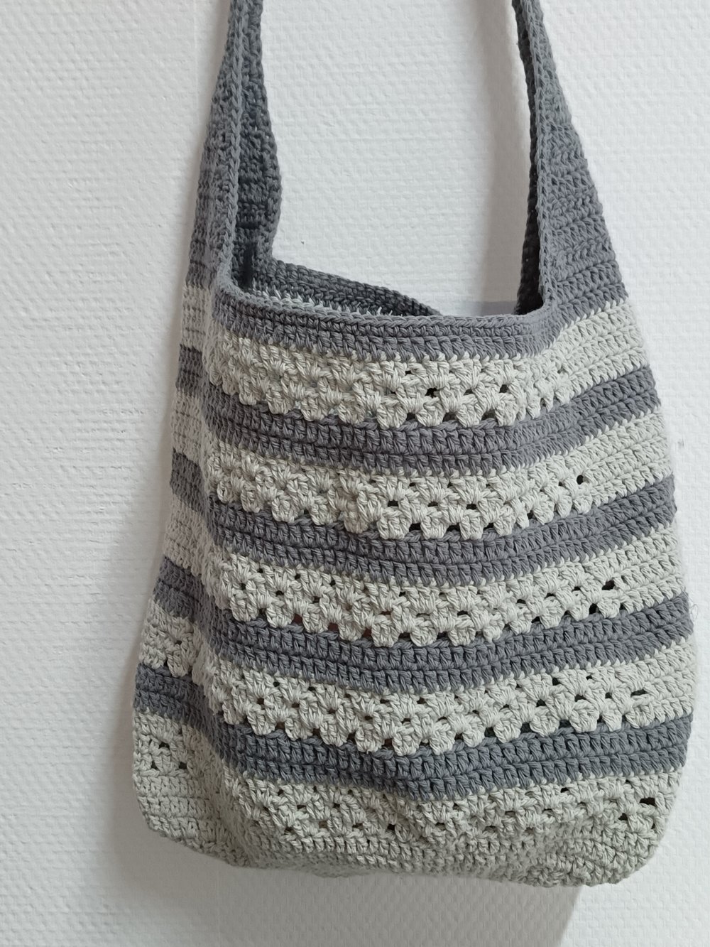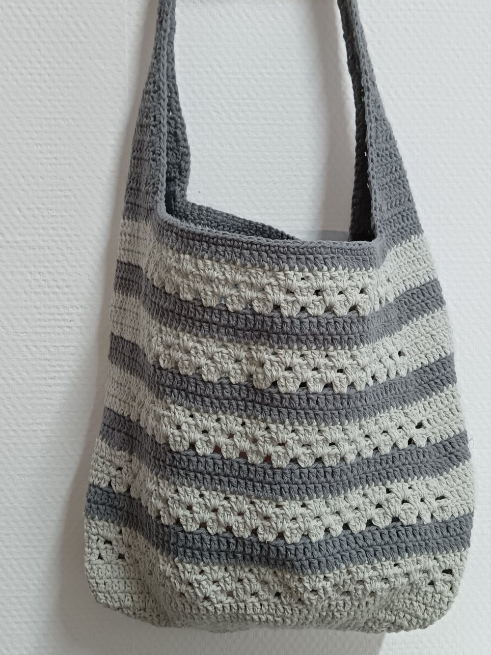 Sac cabas au crochet fait main – 2 tons de gris, coton et laine