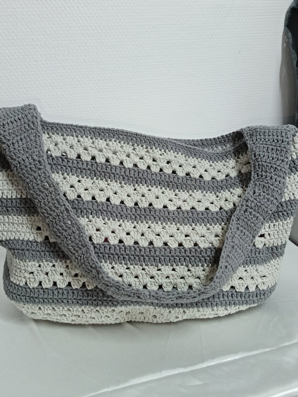 Magnifique sac cabas au crochet, entièrement fait main avec soin. Réalisé dans un joli mélange de laine et coton, ce sac est à la fois doux, solide et agréable au toucher. Ses deux tons de gris lui donnent un style chic et intemporel, parfait pour toutes les saisons.
