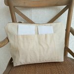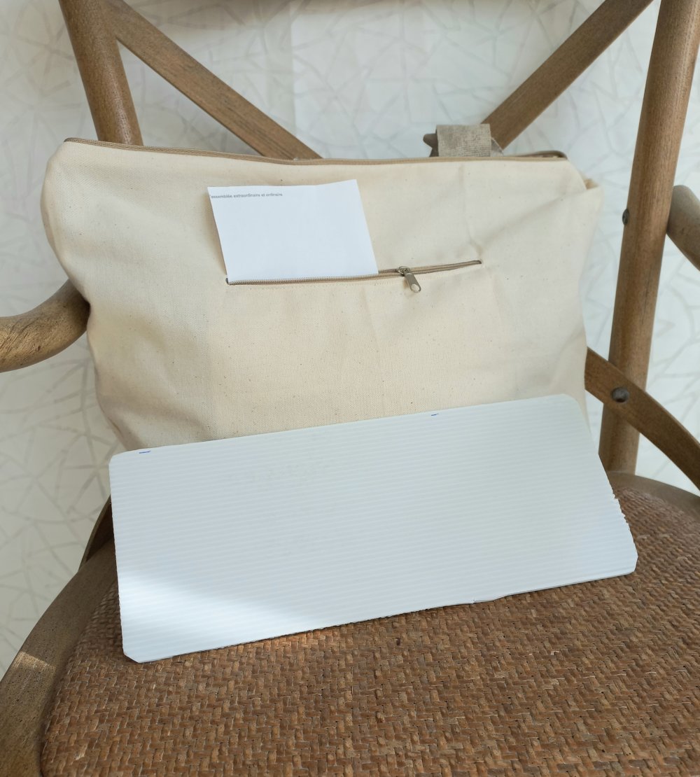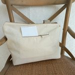 les anses sont en lin couleur naturelle, attachée par du simili cuir beige