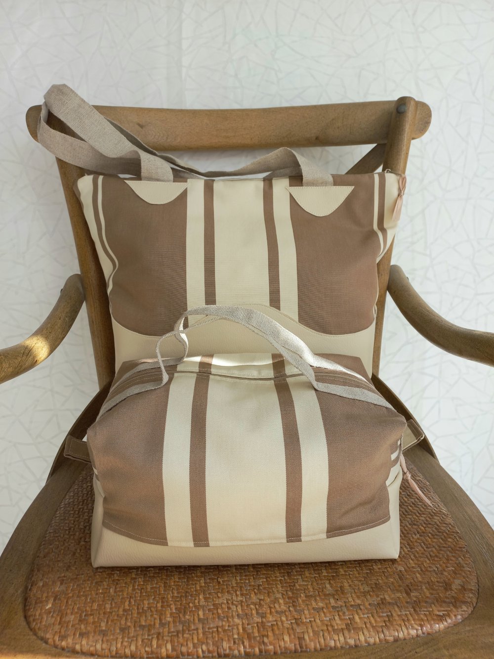 photo n°7:l'ensemble rayé beige (sac cabas et vanity) est vendu séparément