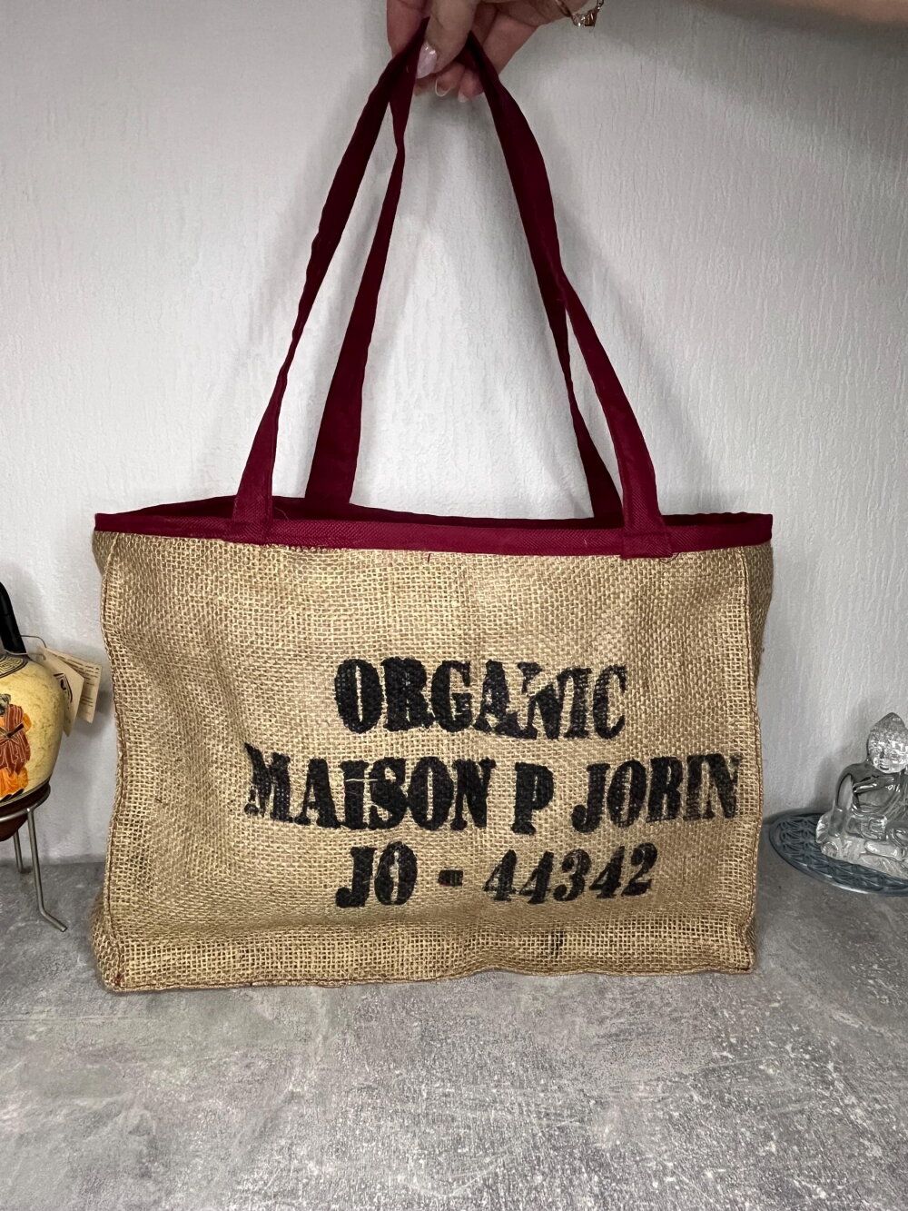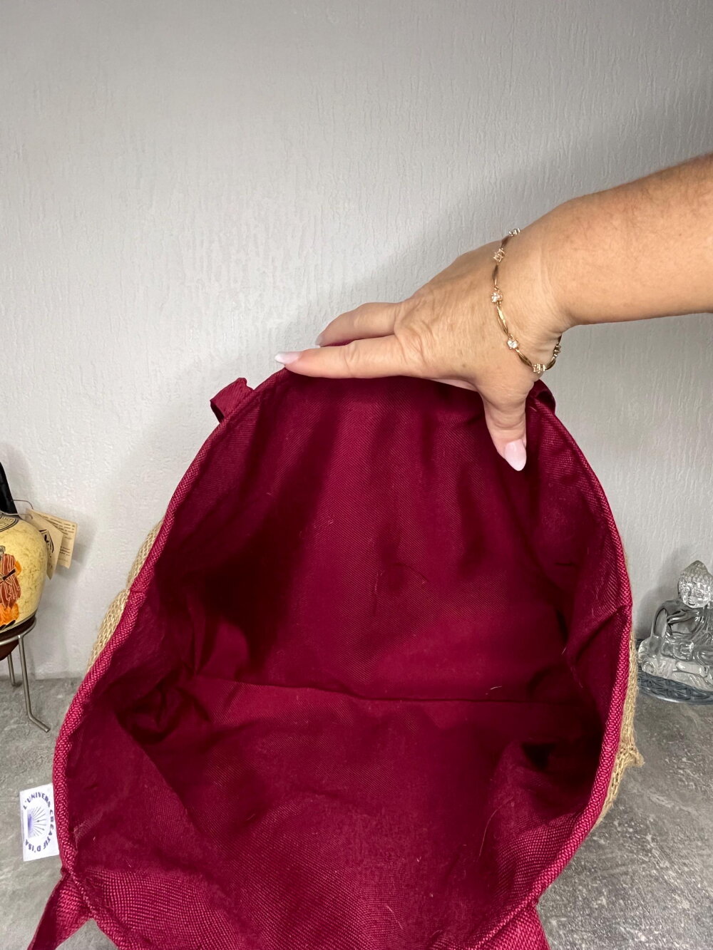 Extérieur en toile de jute naturelle et Doublure intérieure coton bordeaux