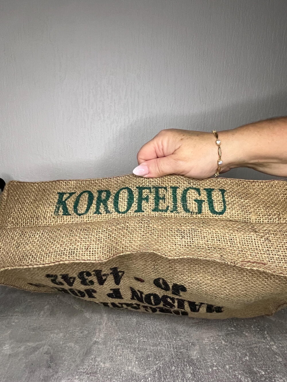 Sac cabas 33x23x11cm réalisé à partir d'un sac d'import de café de Guinée