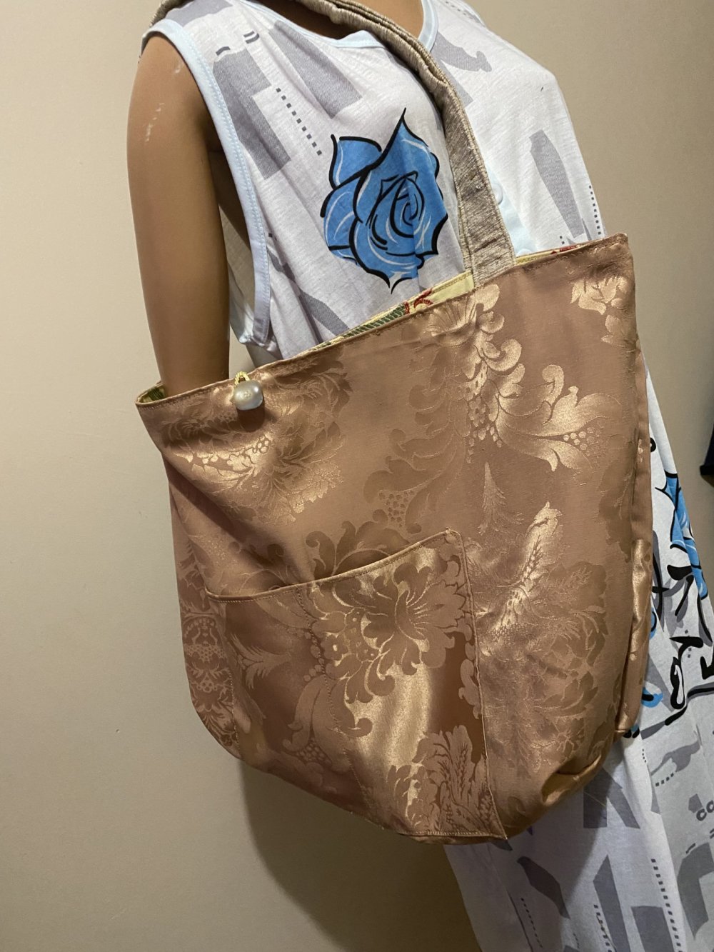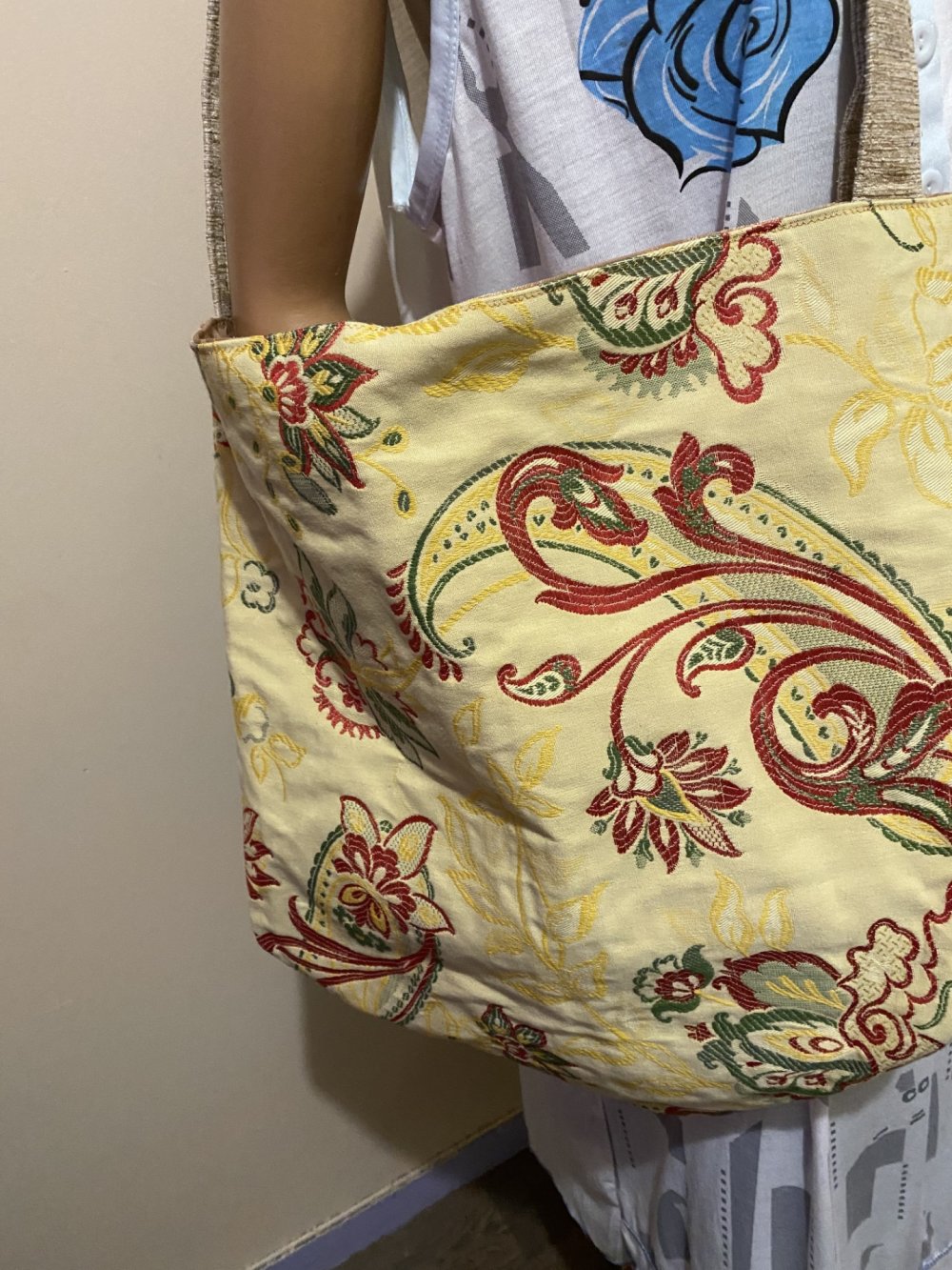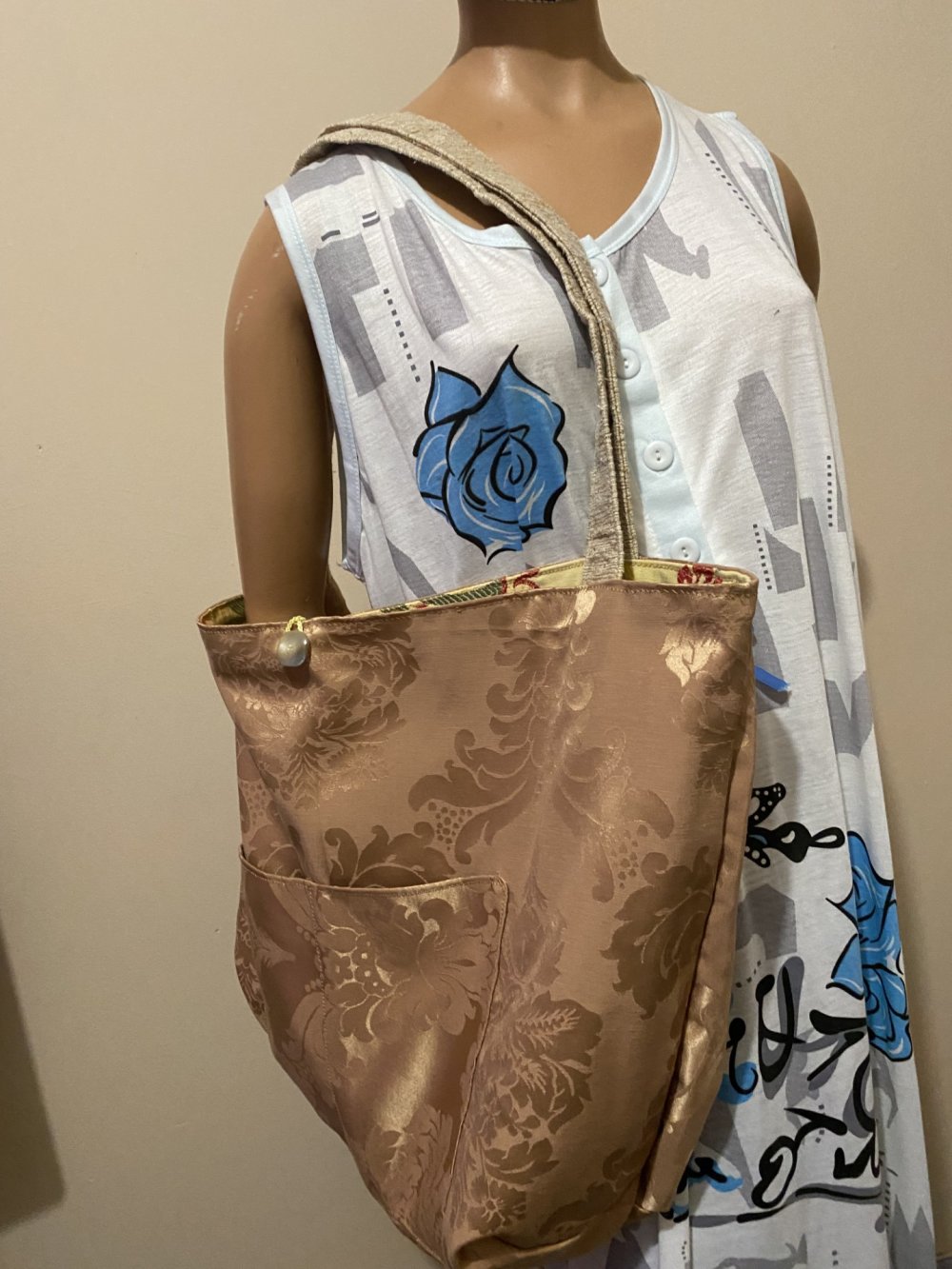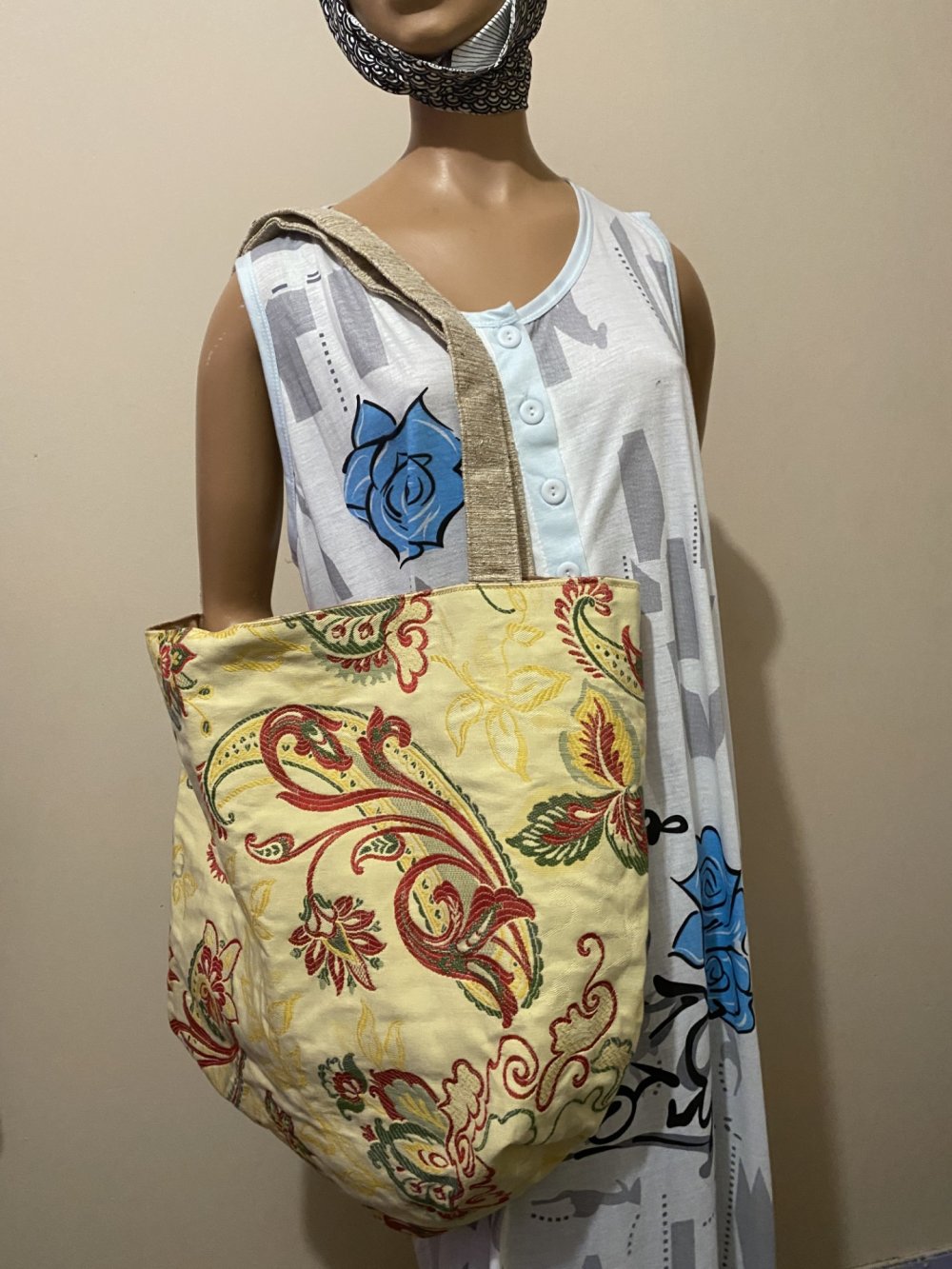 A tout moment, pour faire du shopping, aller au sport, partir en week-end, ce sac réversible (aussi cabas) de 60 cms x 39 cms de hauteur est réalisé avec chaque coté différent de tissu en coton assez épais (5 premières photos constituent le sac)-