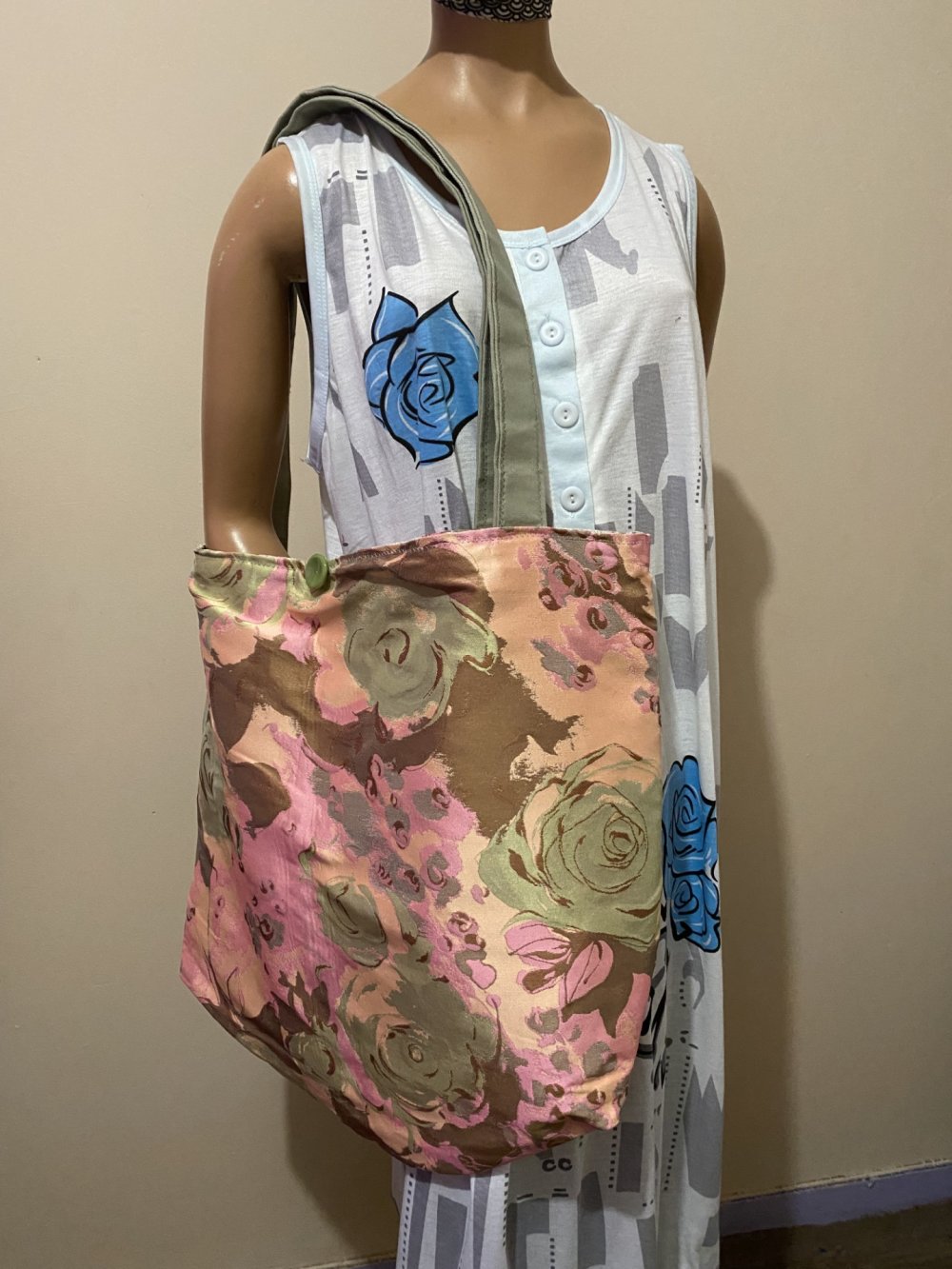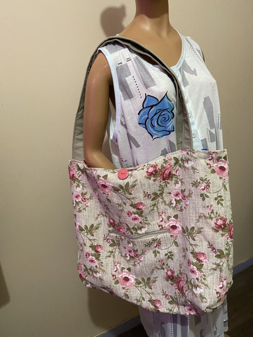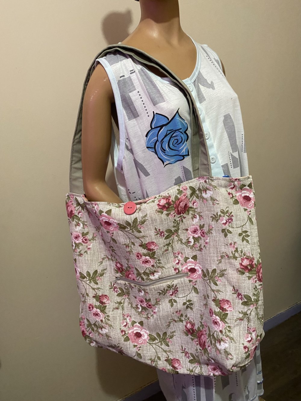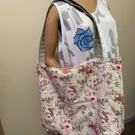 Pour faire du shopping, aller au sport, partir en week-end, ce Sac/Cabas - de 36 cms hauteur x 60 cms largeur - est réalisé dans un tissu en coton assez épais et résistant (style jacquard), imprimés fleuris - (2 premières photos)