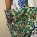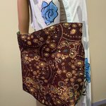 à noter que la couleur marron claire de l'intérieur du sac est légèrement brillante - ce n'est pas très voyant, mais c'est à savoir. Par ailleurs, le brillant ne part pas au lavage - le tissage de l'imprimé est fait avec ce coté très légèrement brillant dans le marron clair uniquement.