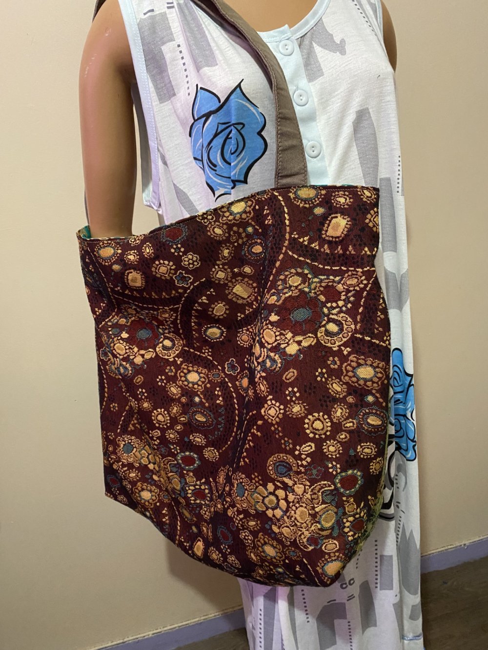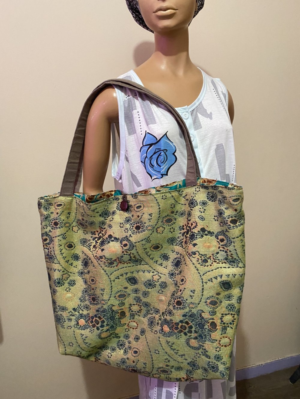 A tout moment, pour faire du shopping, aller au sport, partir en week-end, ce sac réversible (aussi cabas) de 60 cms x 40 cms de hauteur est réalisé avec chaque coté différent de tissu en coton assez épais (2 dernières photos)-