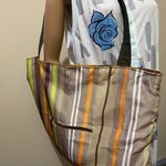 Ce sac se porte à l'épaule ou à la main, grâce aux anses de 71 cms, faites dans un tissu ton marron foncé en coton.