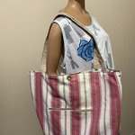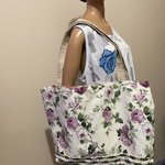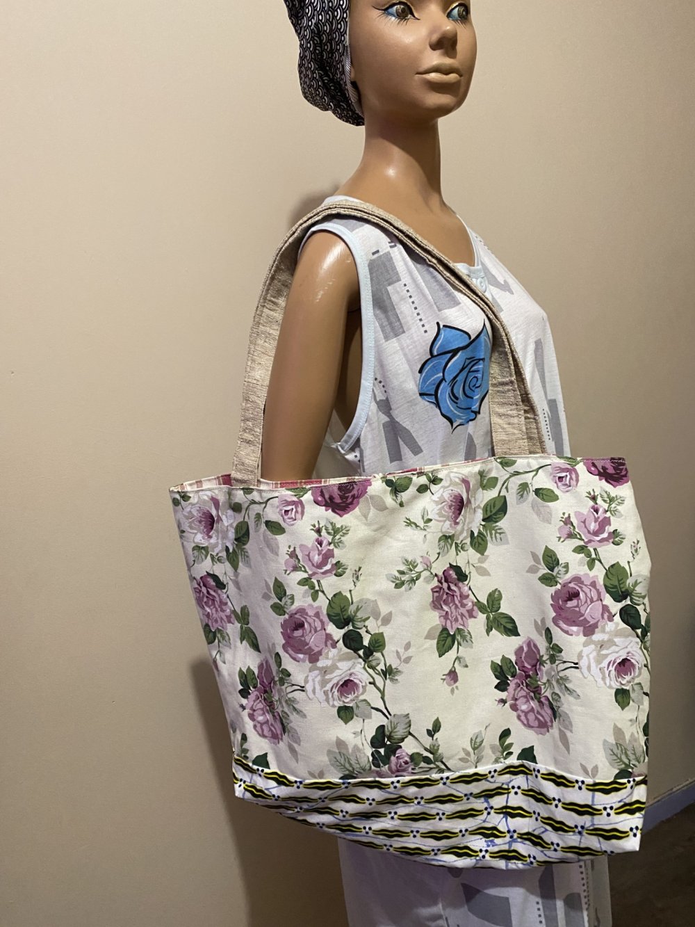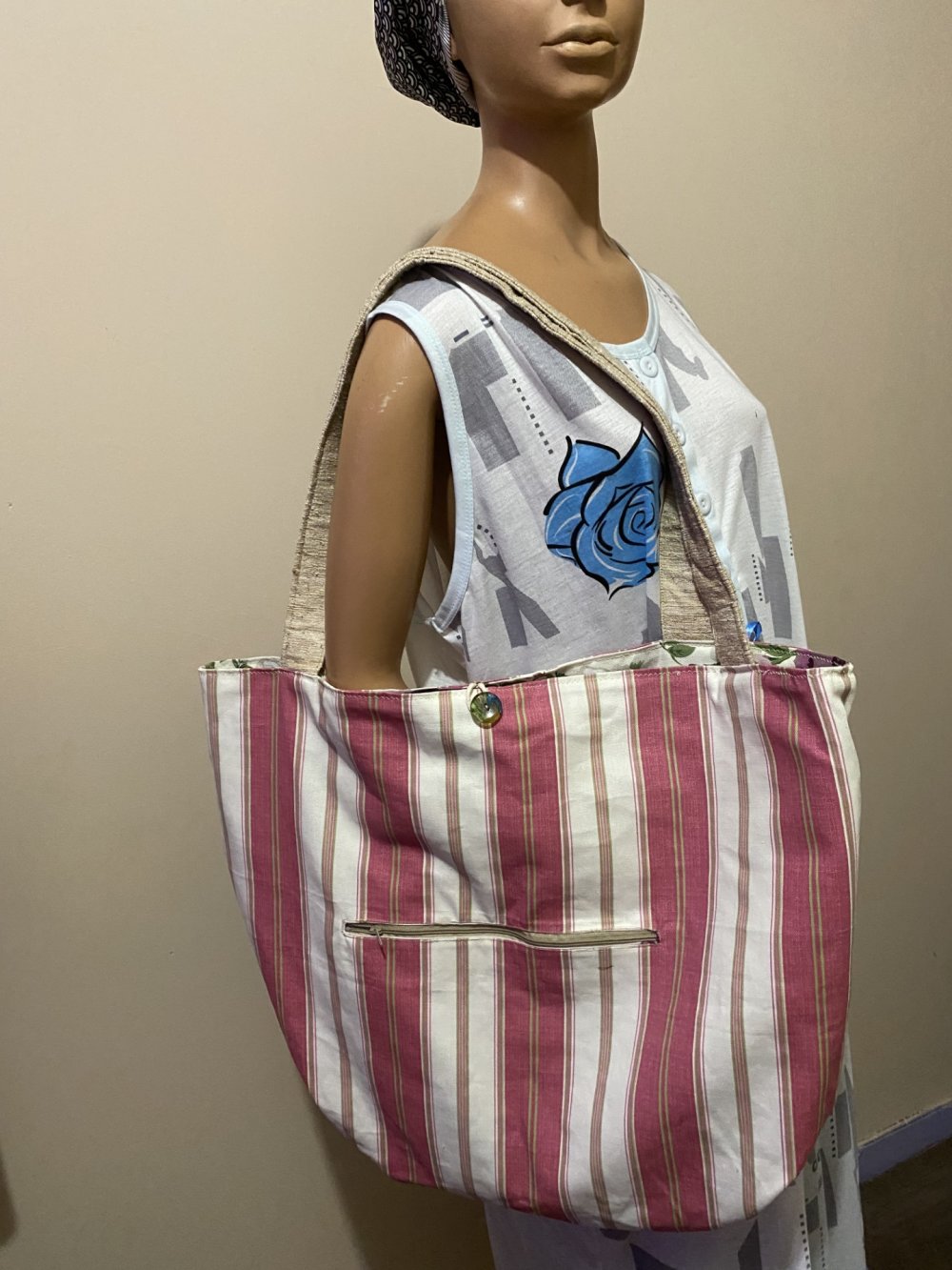 A tout moment, pour faire du shopping, aller au sport, partir en week-end, ce sac réversible (aussi cabas) de 56 cms x 37 cms de hauteur est réalisé avec chaque coté d'un même tissu en coton assez épais, type jacquard (2 premières photos)-