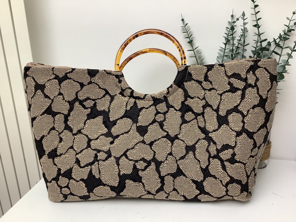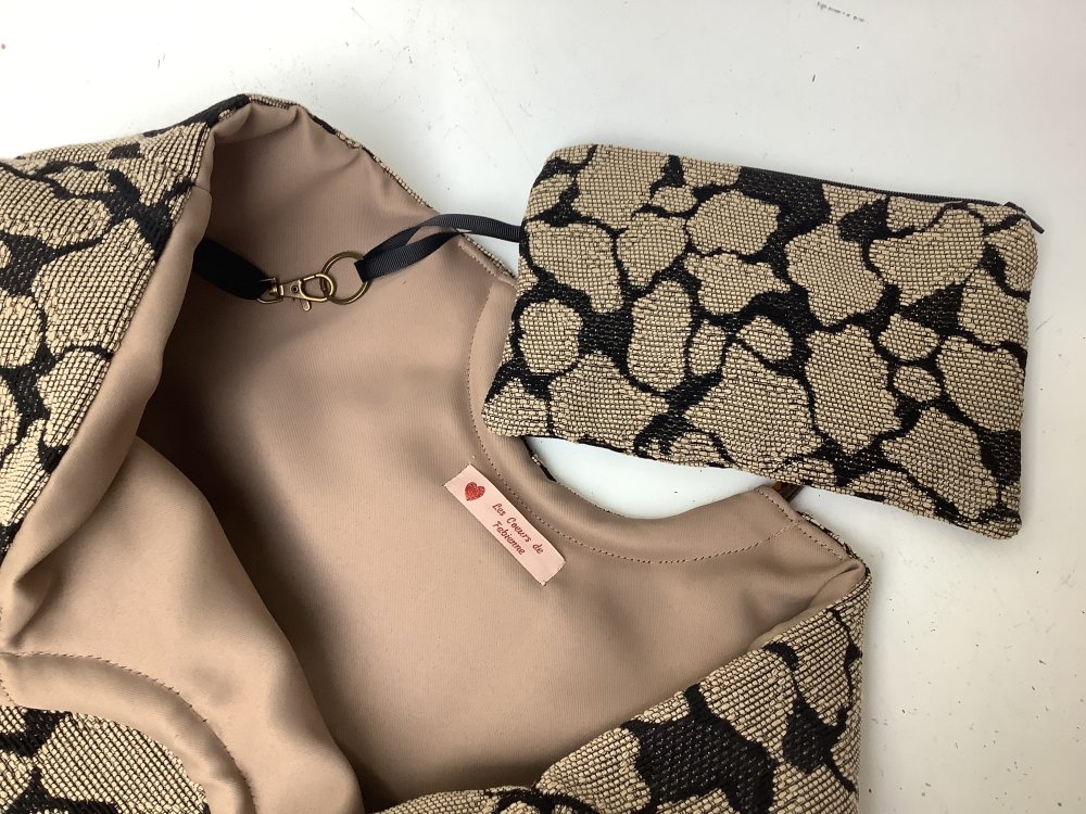 SAC CABAS avec une poche zippée et un mousqueton , le sac est molletoné.