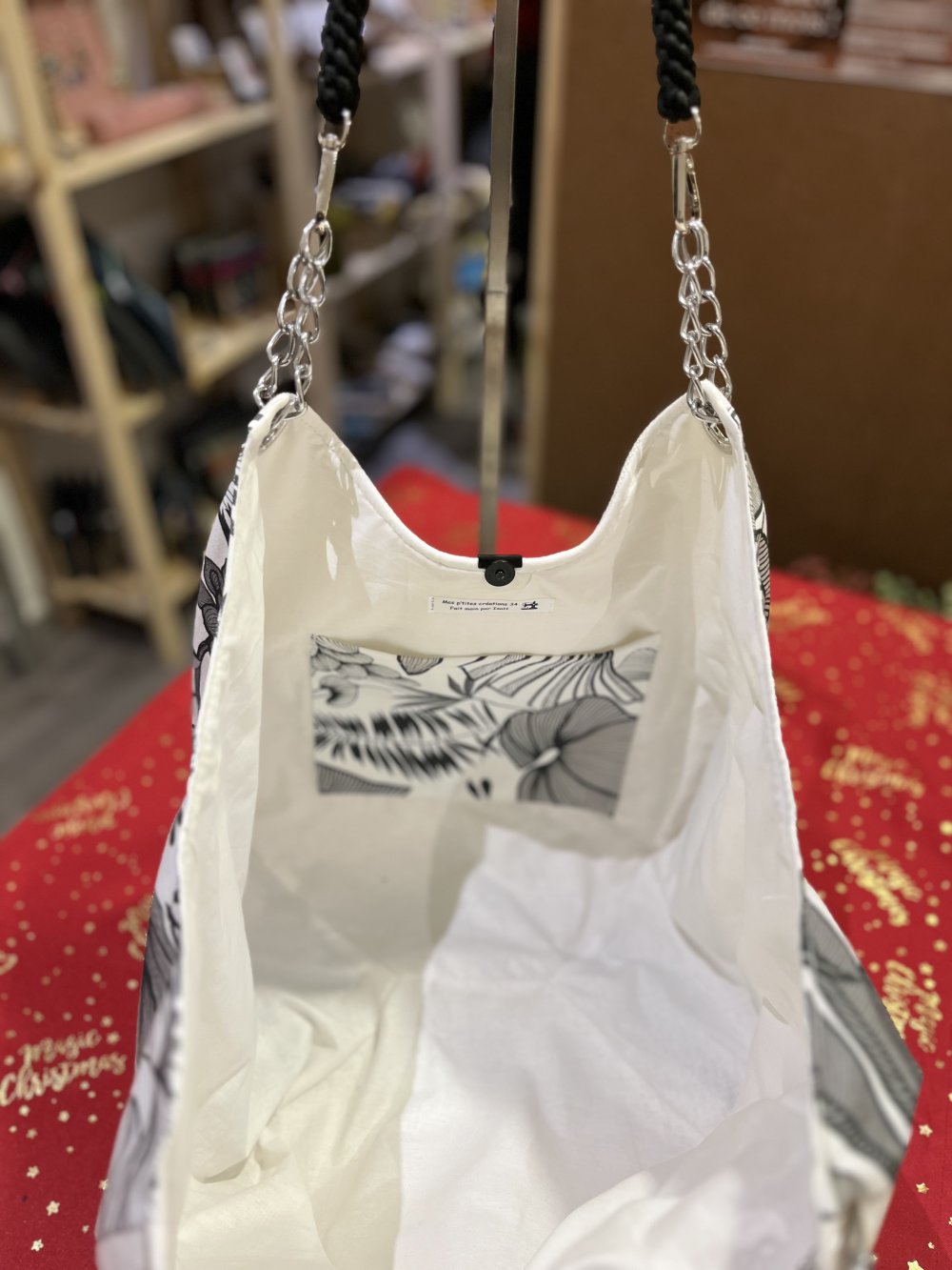 Les anses sont agrémentées d’une chaîne pour un look moderne et peuvent être changées selon le goût de chacun(e)