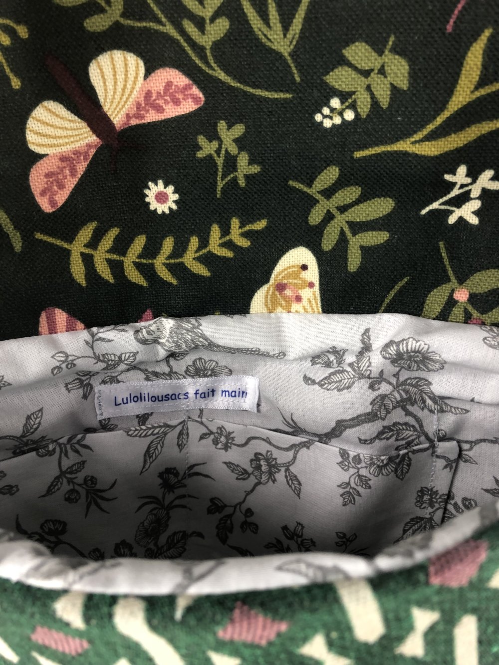 Sac Minaudière Tissus Patchwork Collection Lina Réf 7054 Hauteur 22cm Largeur 25cm Poche Intérieur Anse Bandoulière réglable Fermeture Bouton Doublure Blanc/Noir Fait Main Modèle Unique